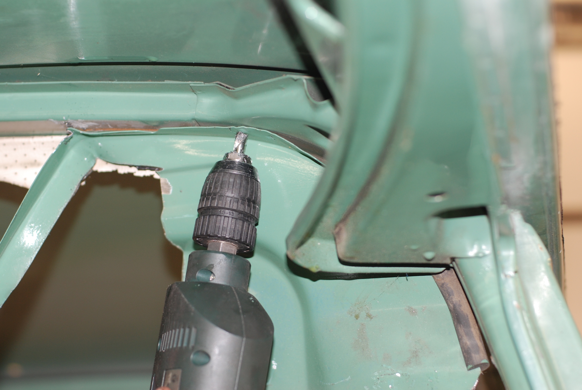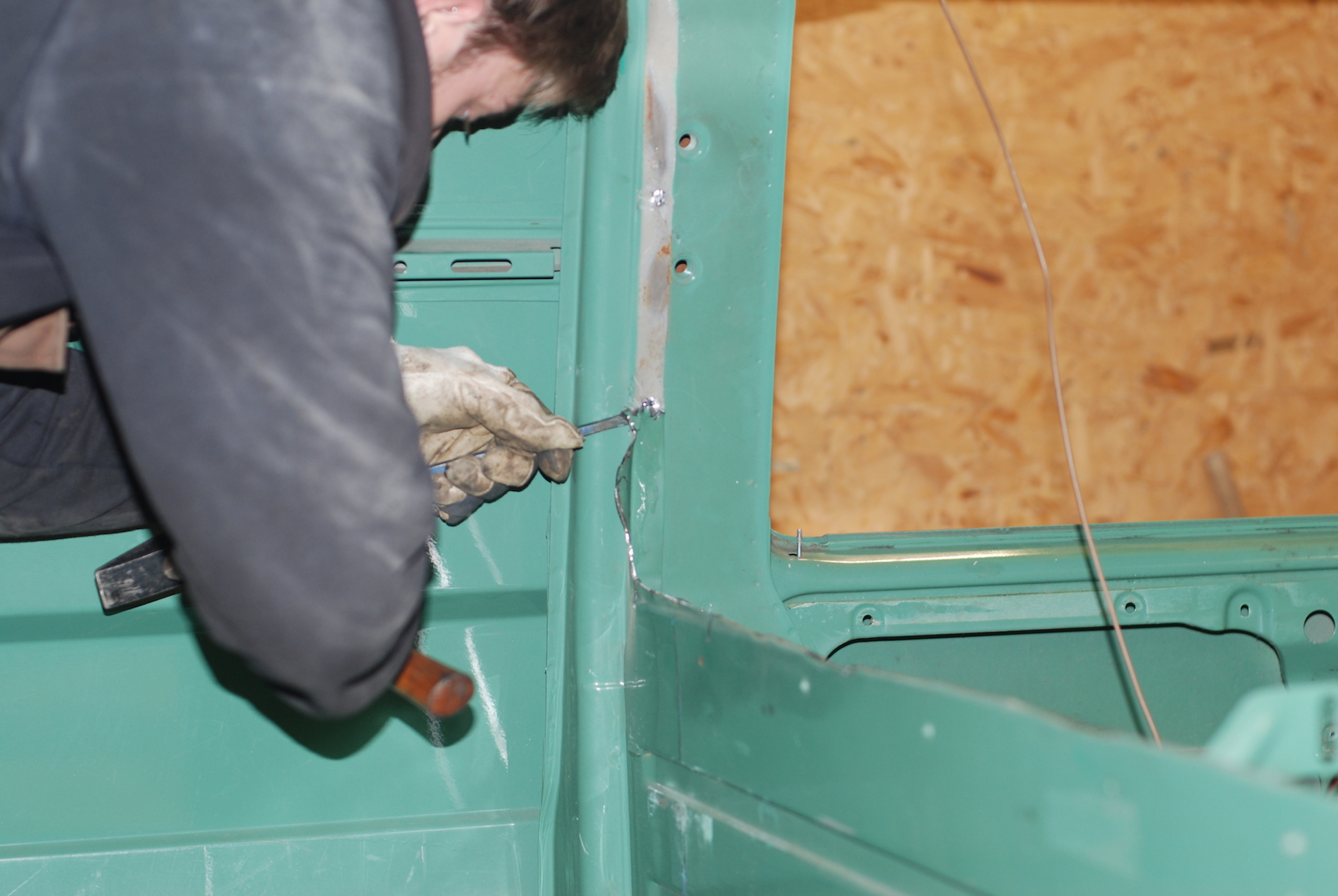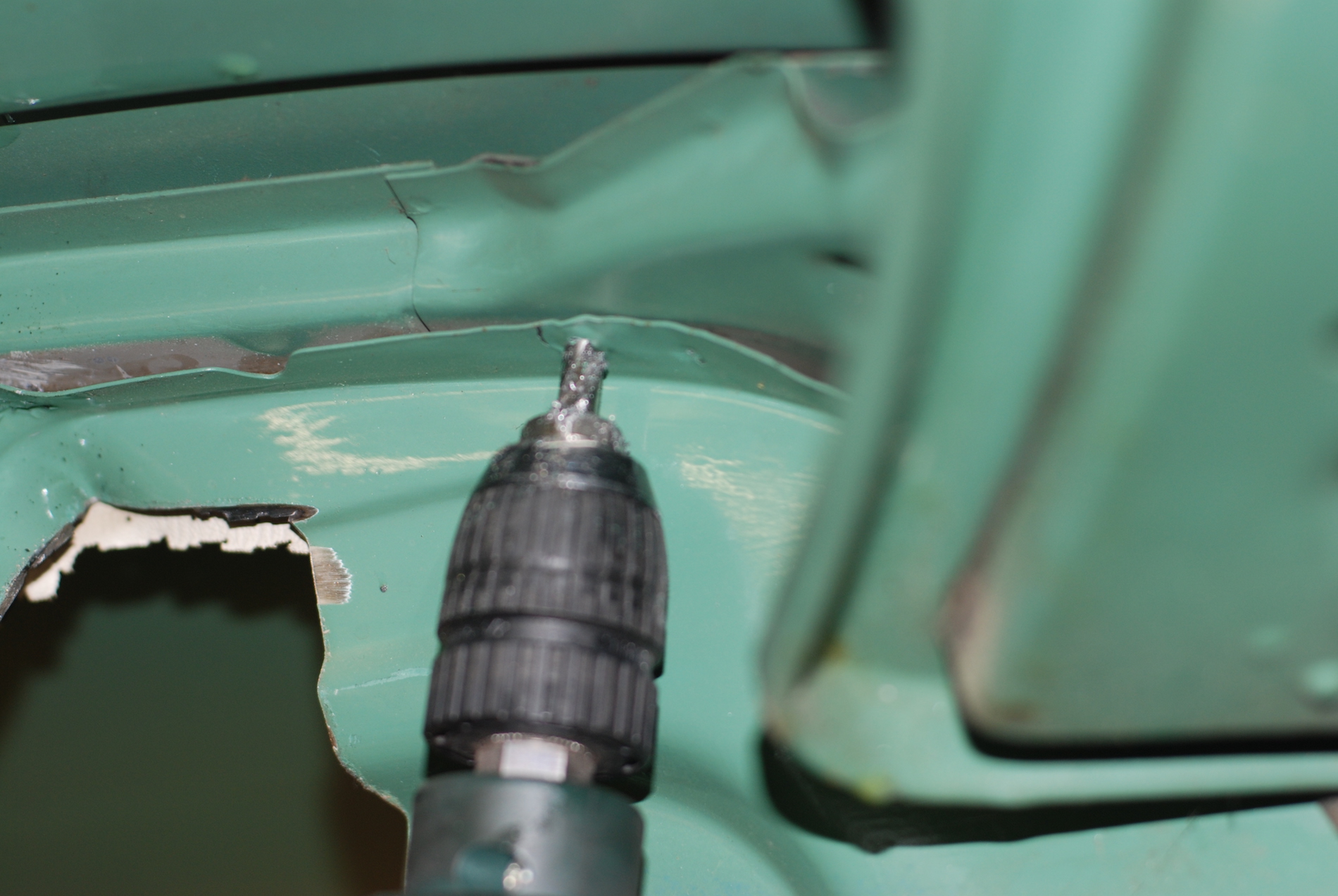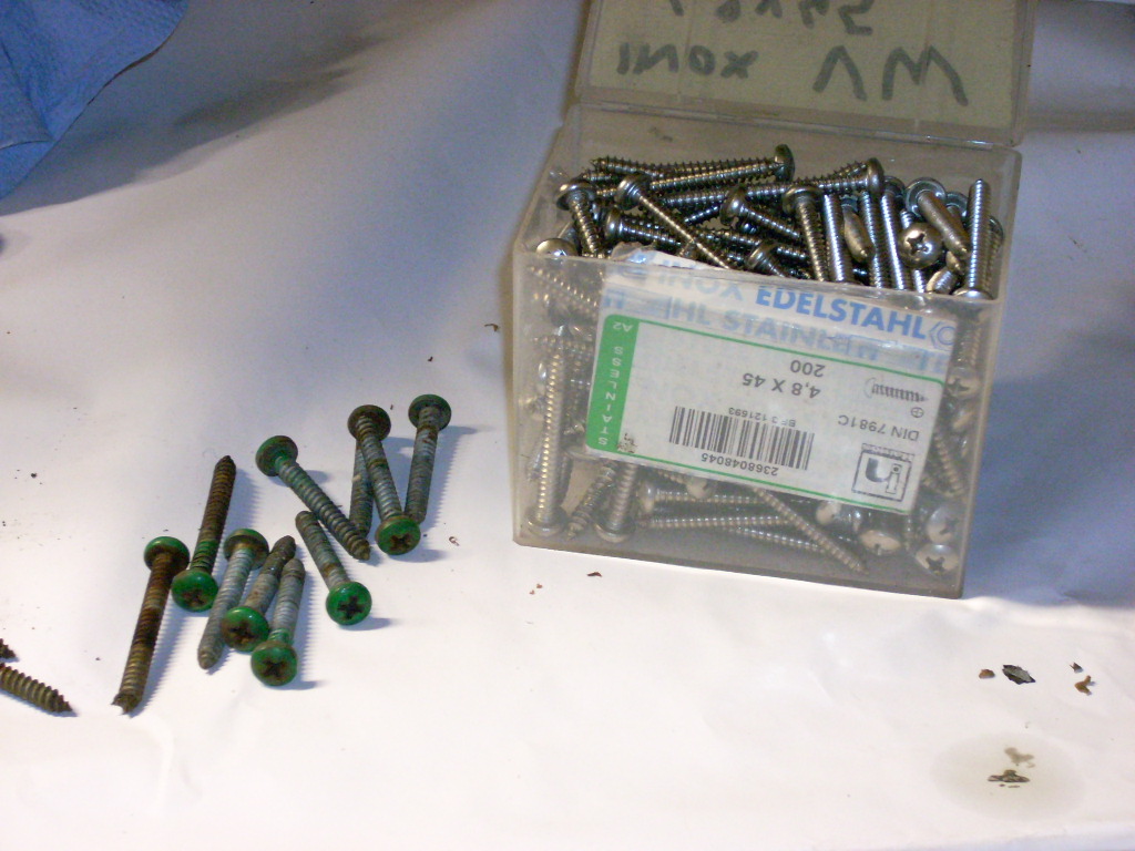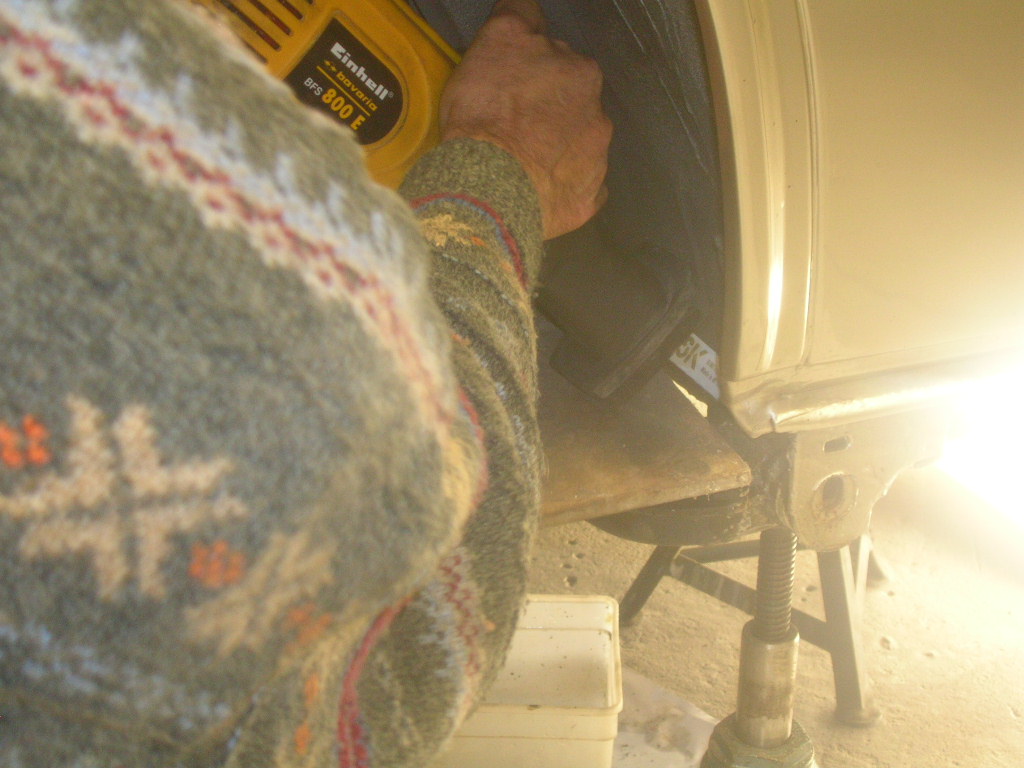 Het rechtse achterstuk verbergde heel wat roest.Heel wat jaren geleden stak ik deze zelf weg met polyester en een achterliggend ALU-plaatje.