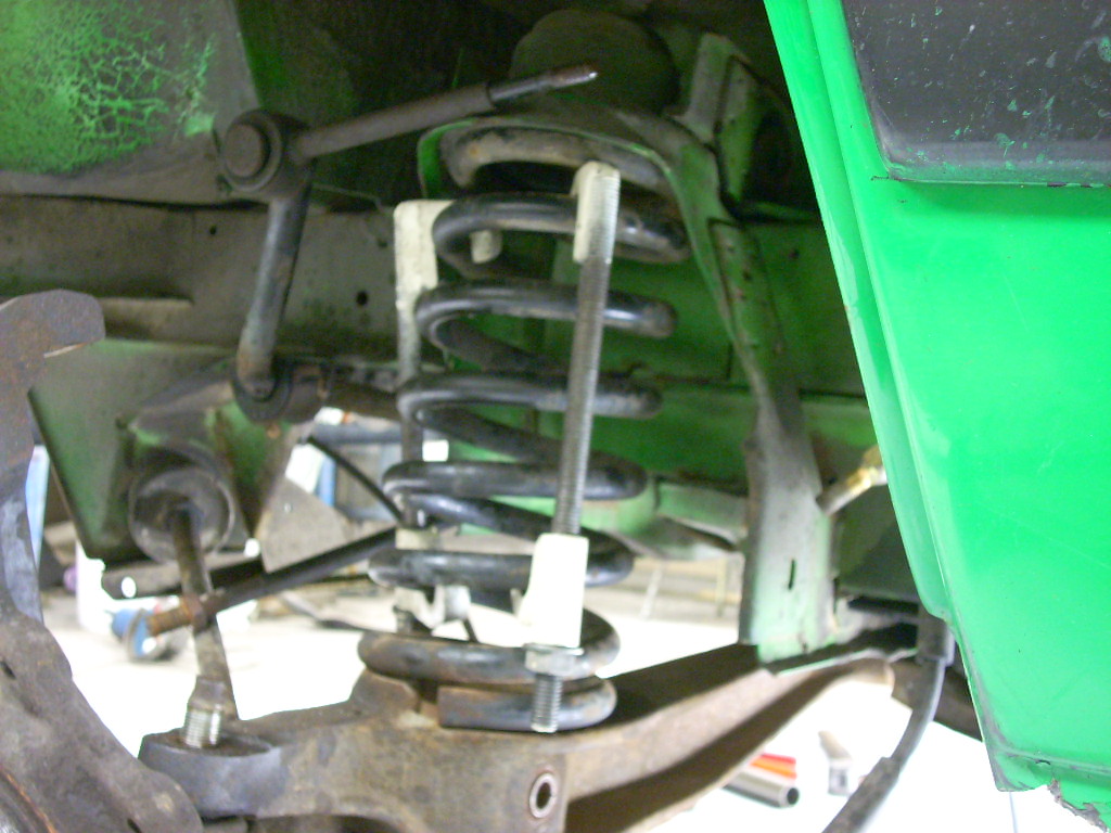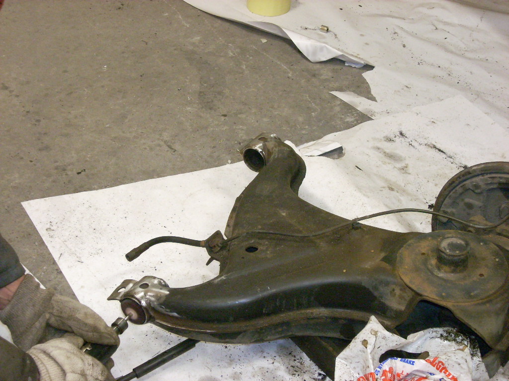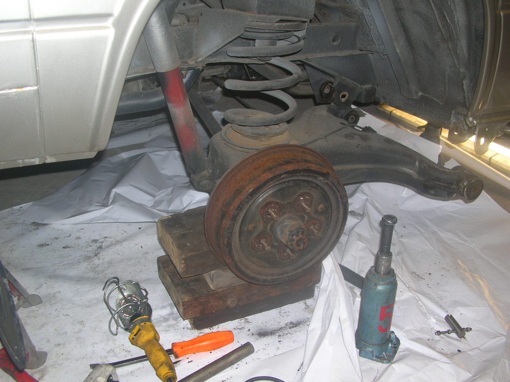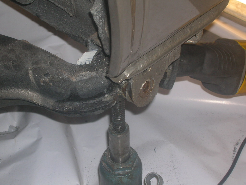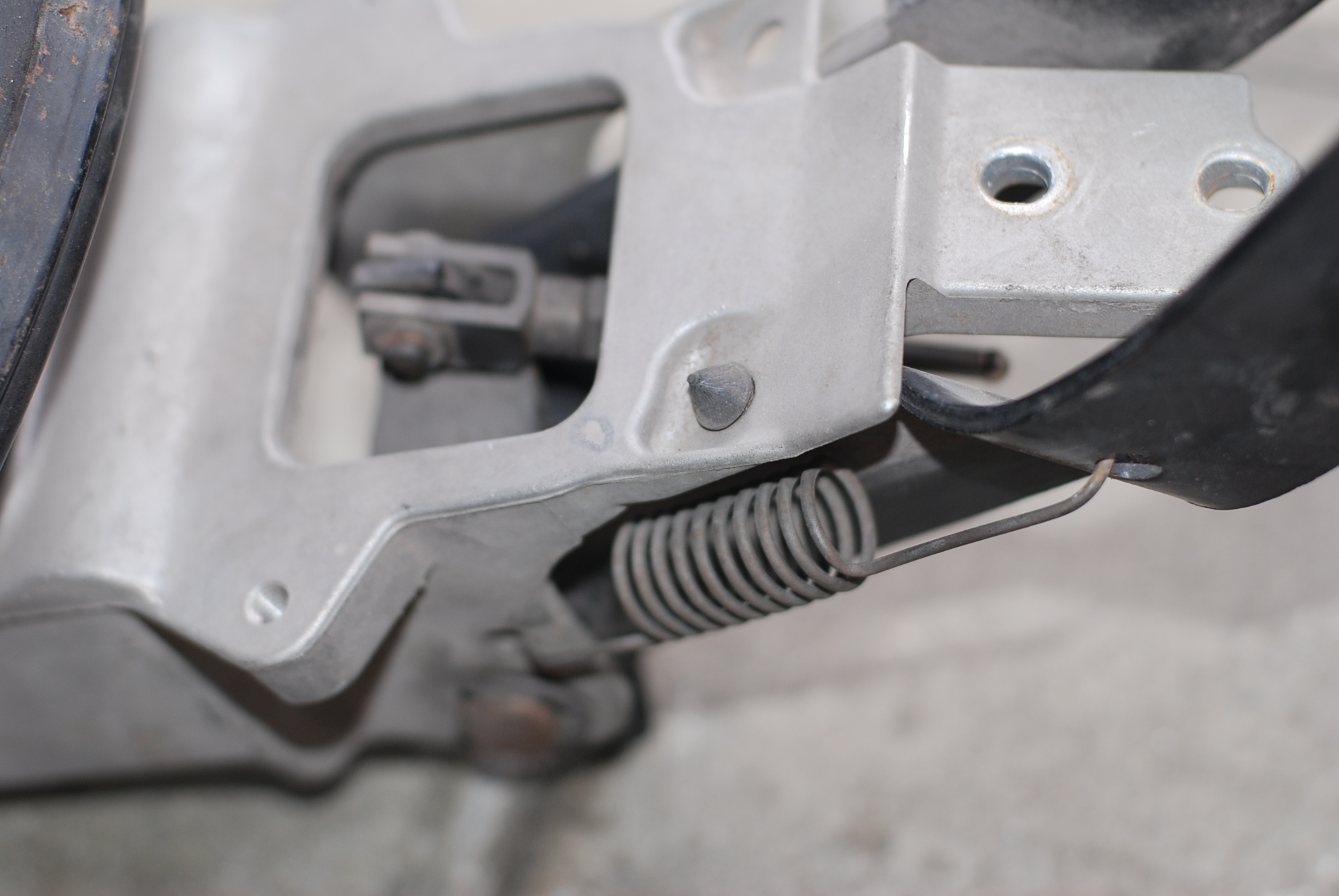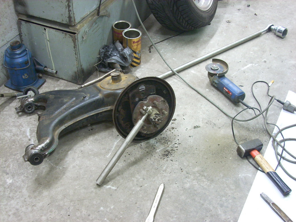 Zicht op de KY motor,welke hij met mijn verlengde krik liet zakken.Terug in zal de giraffe het werk wel doen.