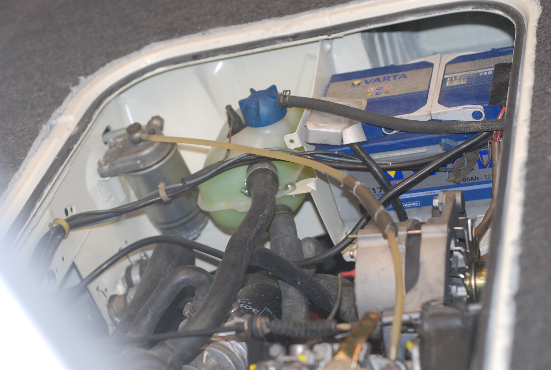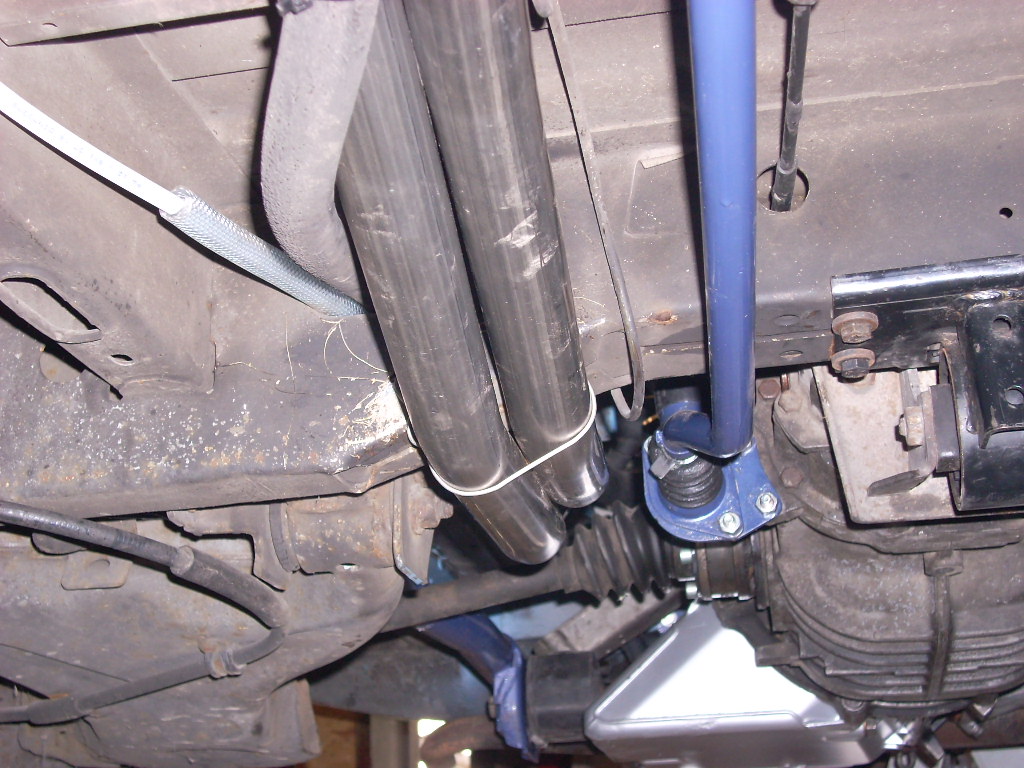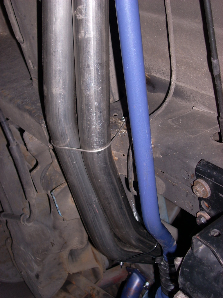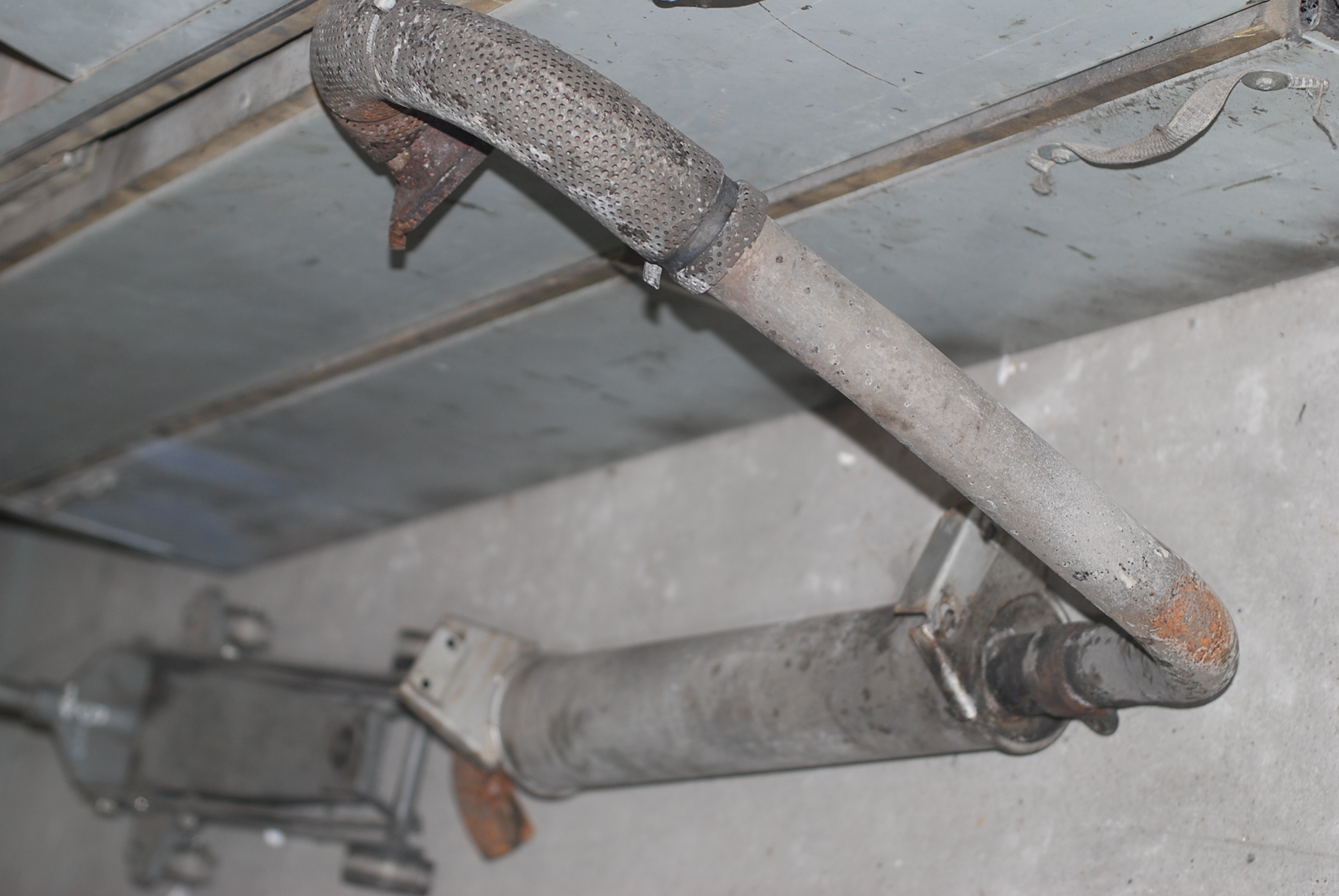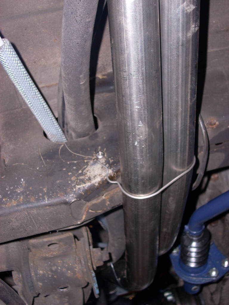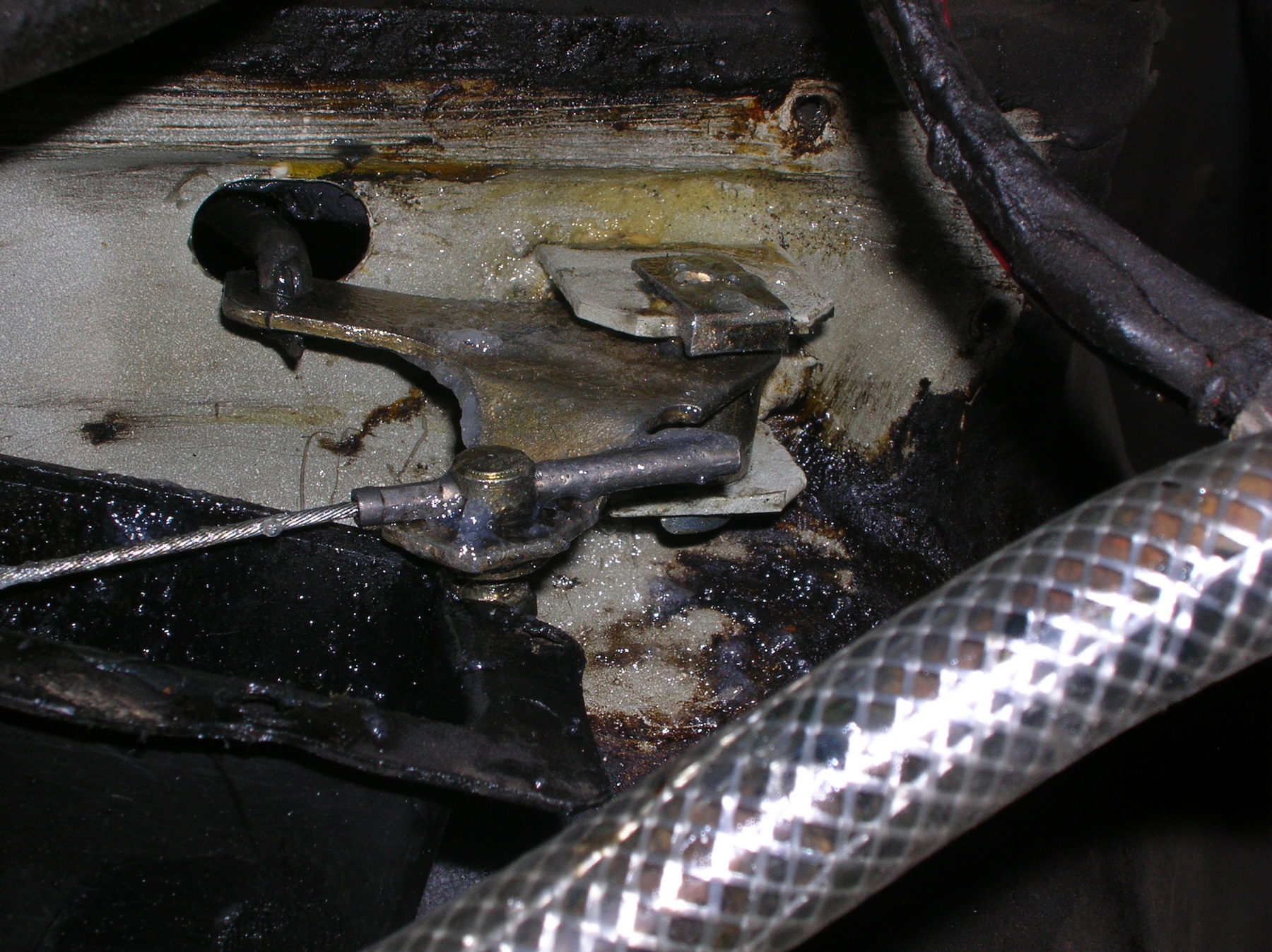 Zicht on de T3.Het korte buisje loopt door het chassis,beschermd door een rubber omhulsel.