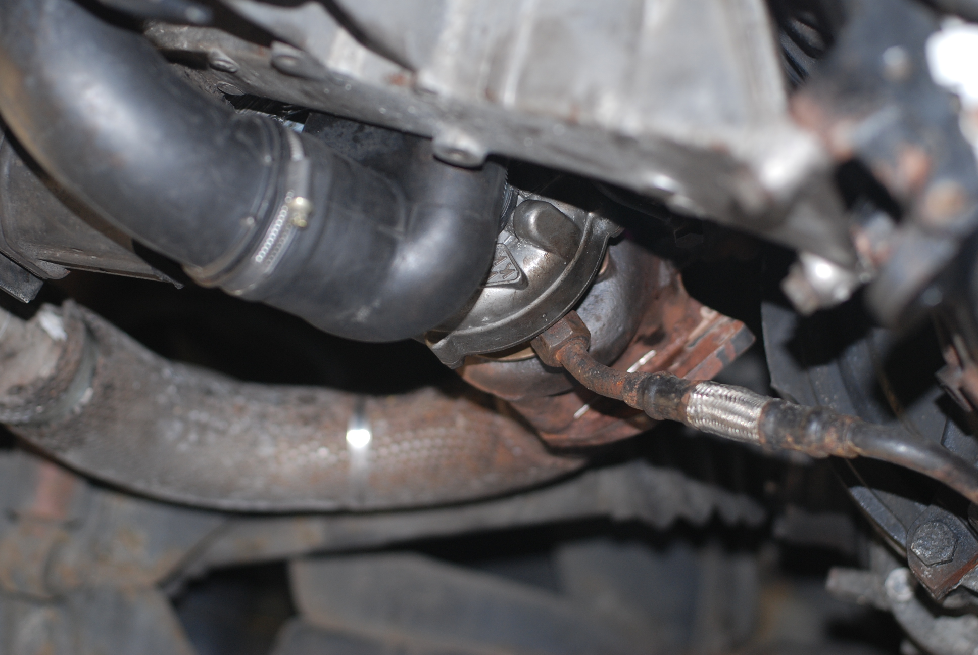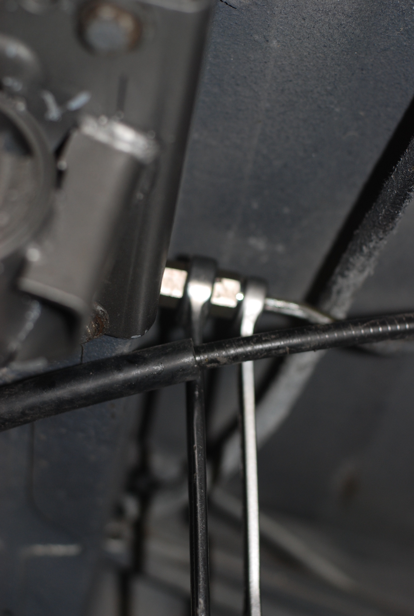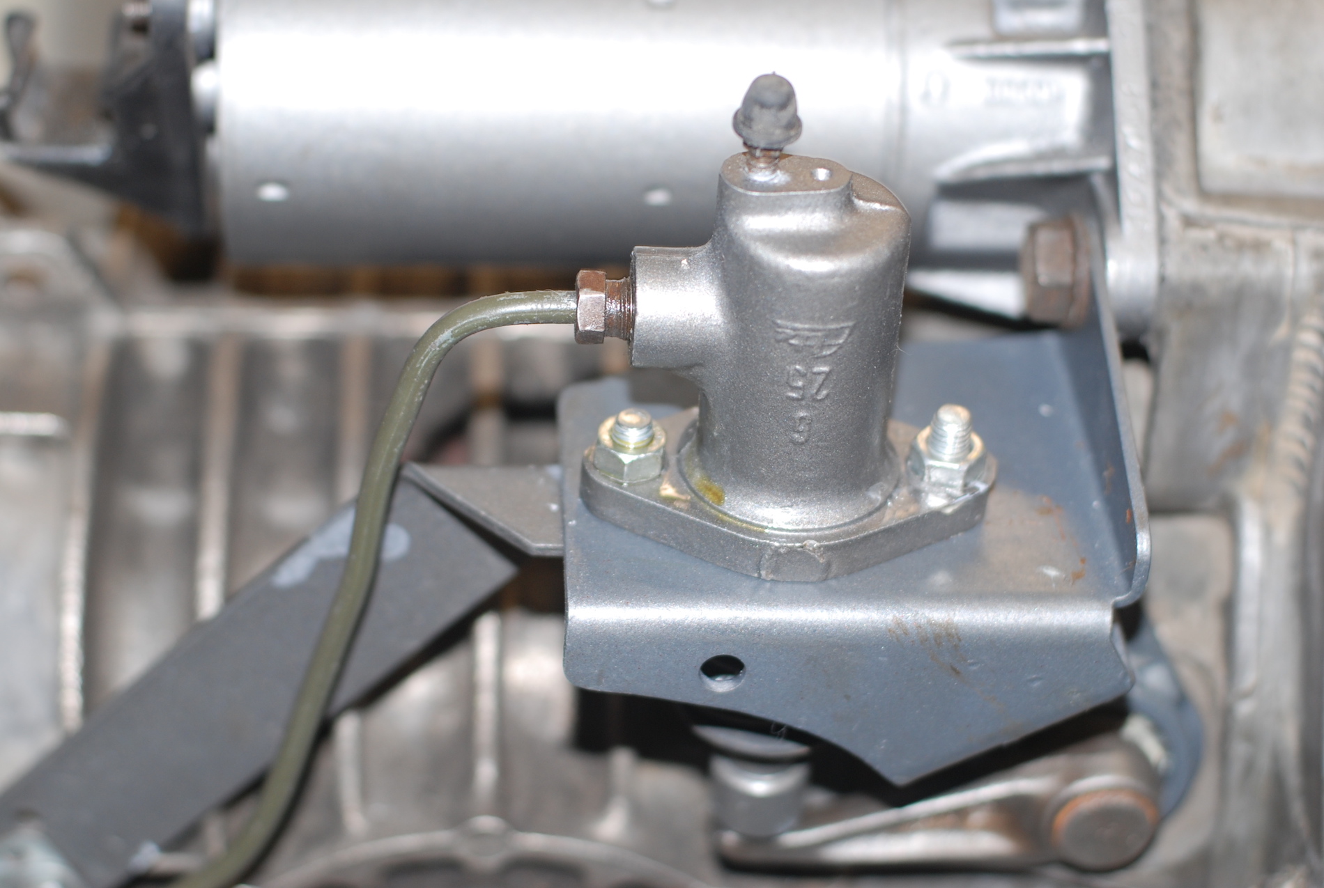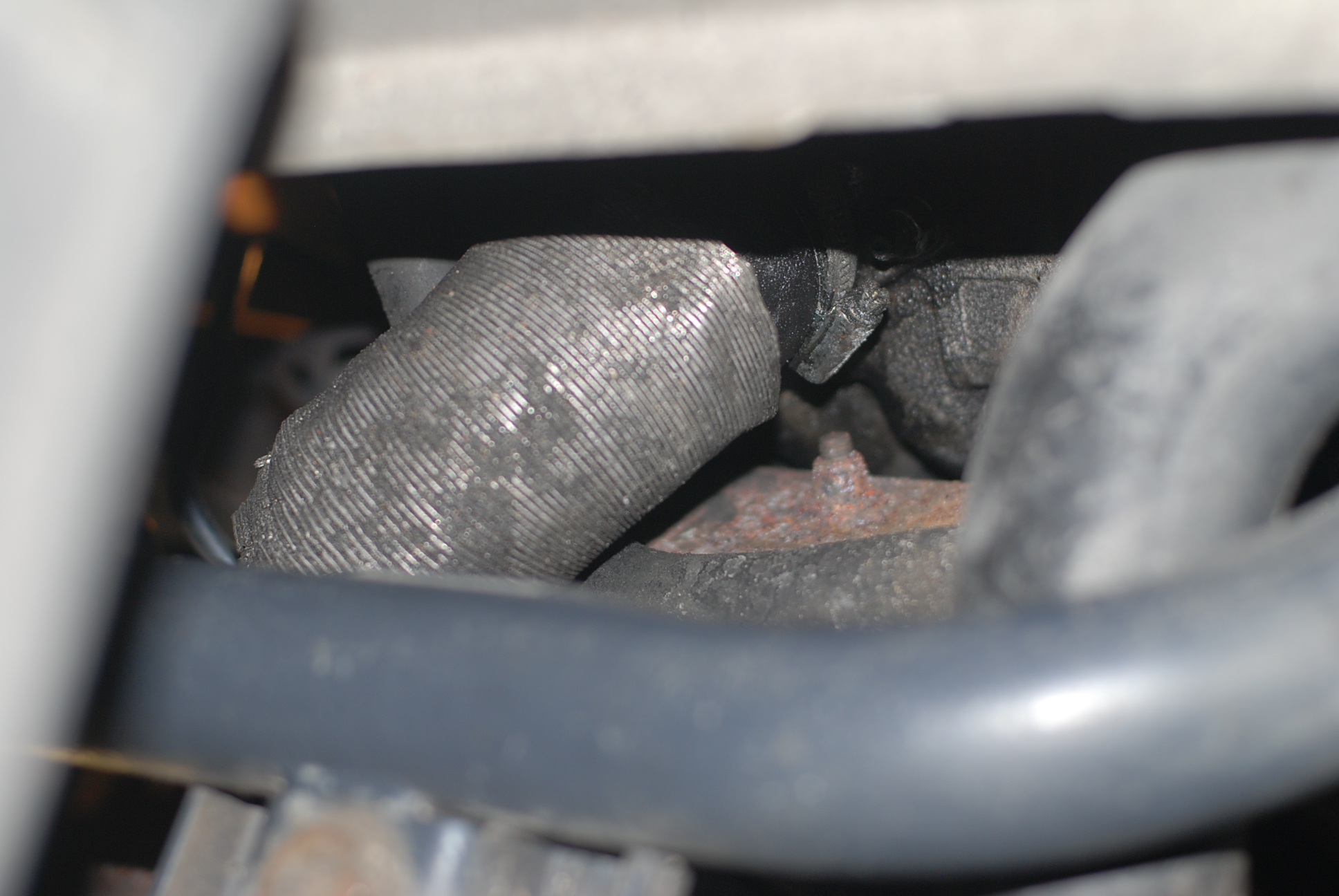 Zicht on de T3.Het korte buisje loopt door het chassis,beschermd door een rubber omhulsel.