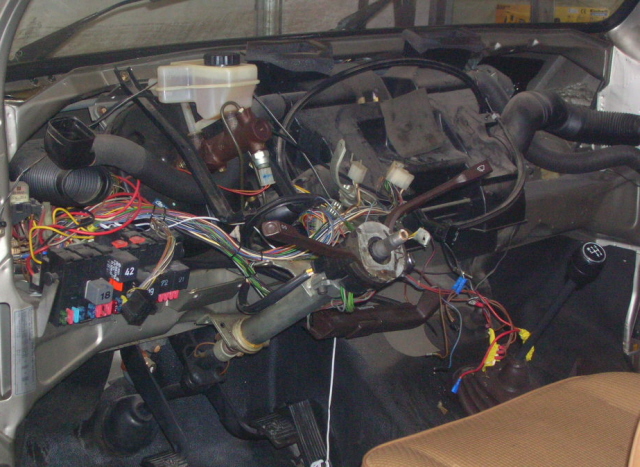 Eerst de batterij-massakabel afleggen. Het instrumentenbord met de vier leuke parkerschroefjes verwijderen.