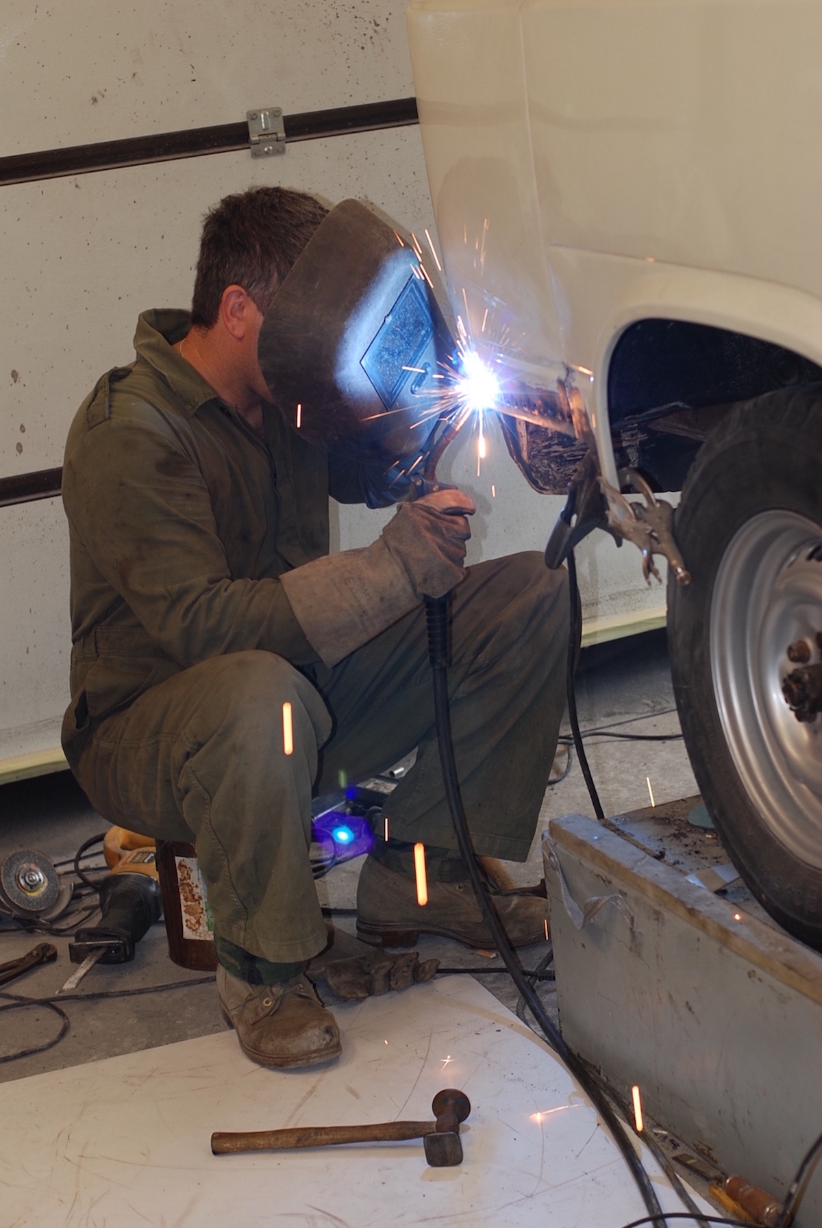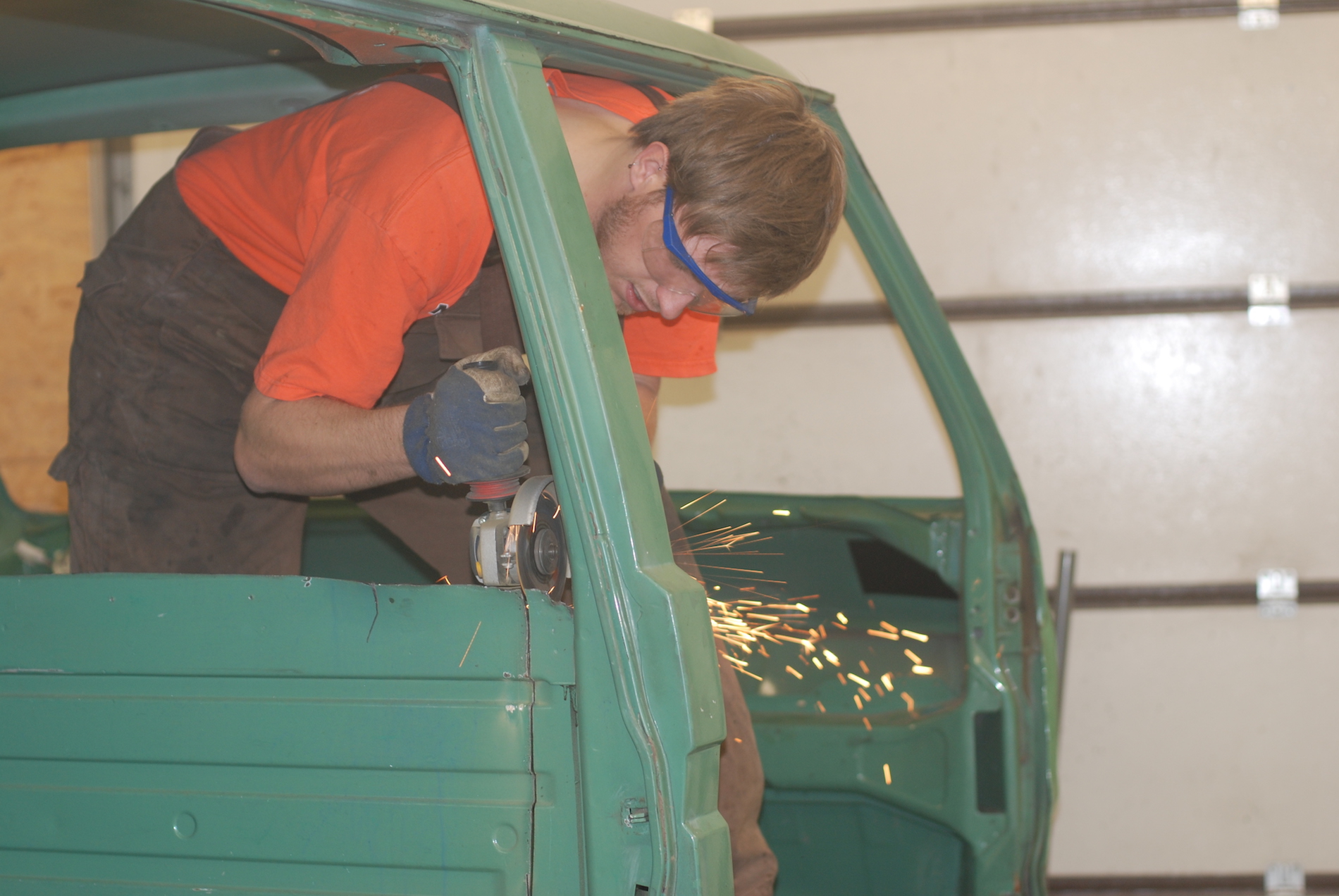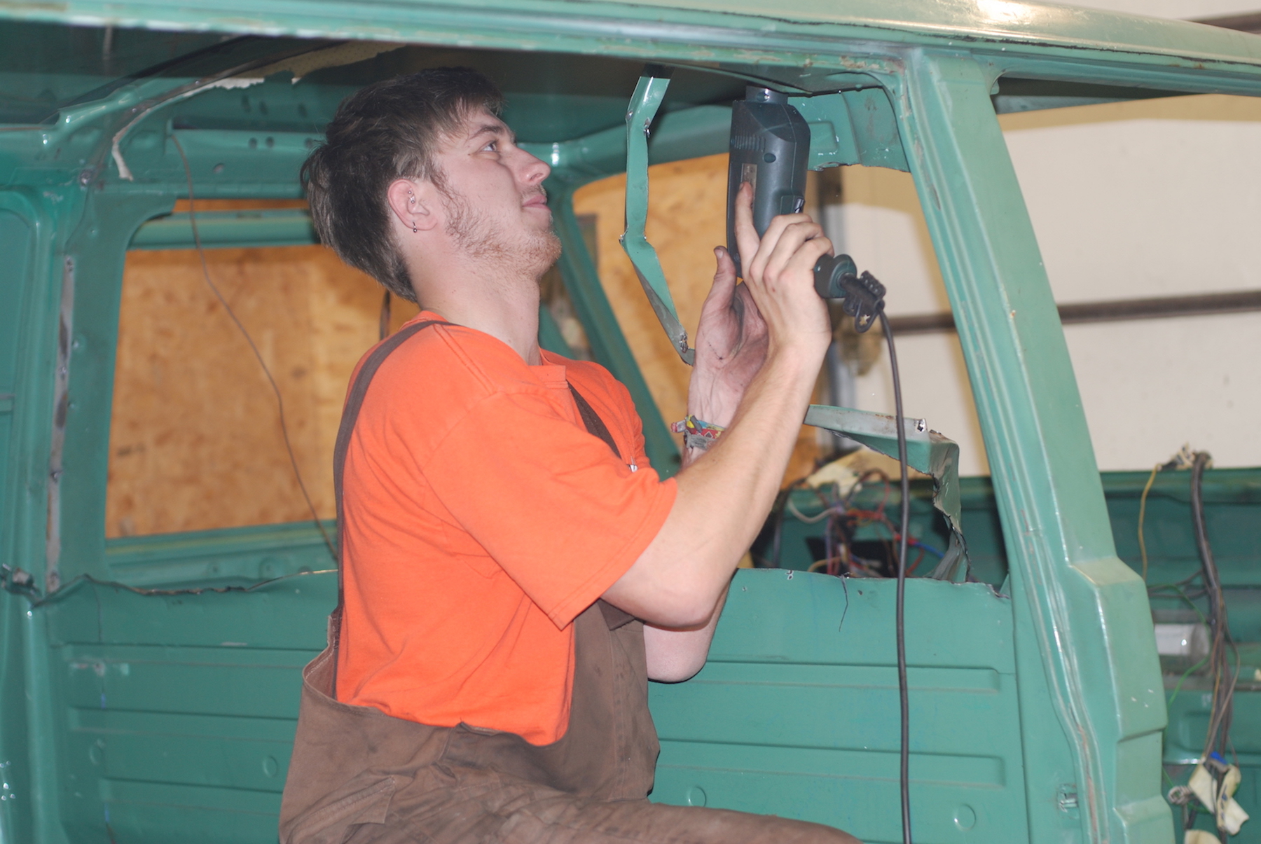 LeoM van het bus-forum maakte graag foto rapportages. Het laatste deel; LeoM T3 onderkantvernieuwing, deel 4. Waar Leo zijn werk laat controleren bij de uitlijning.