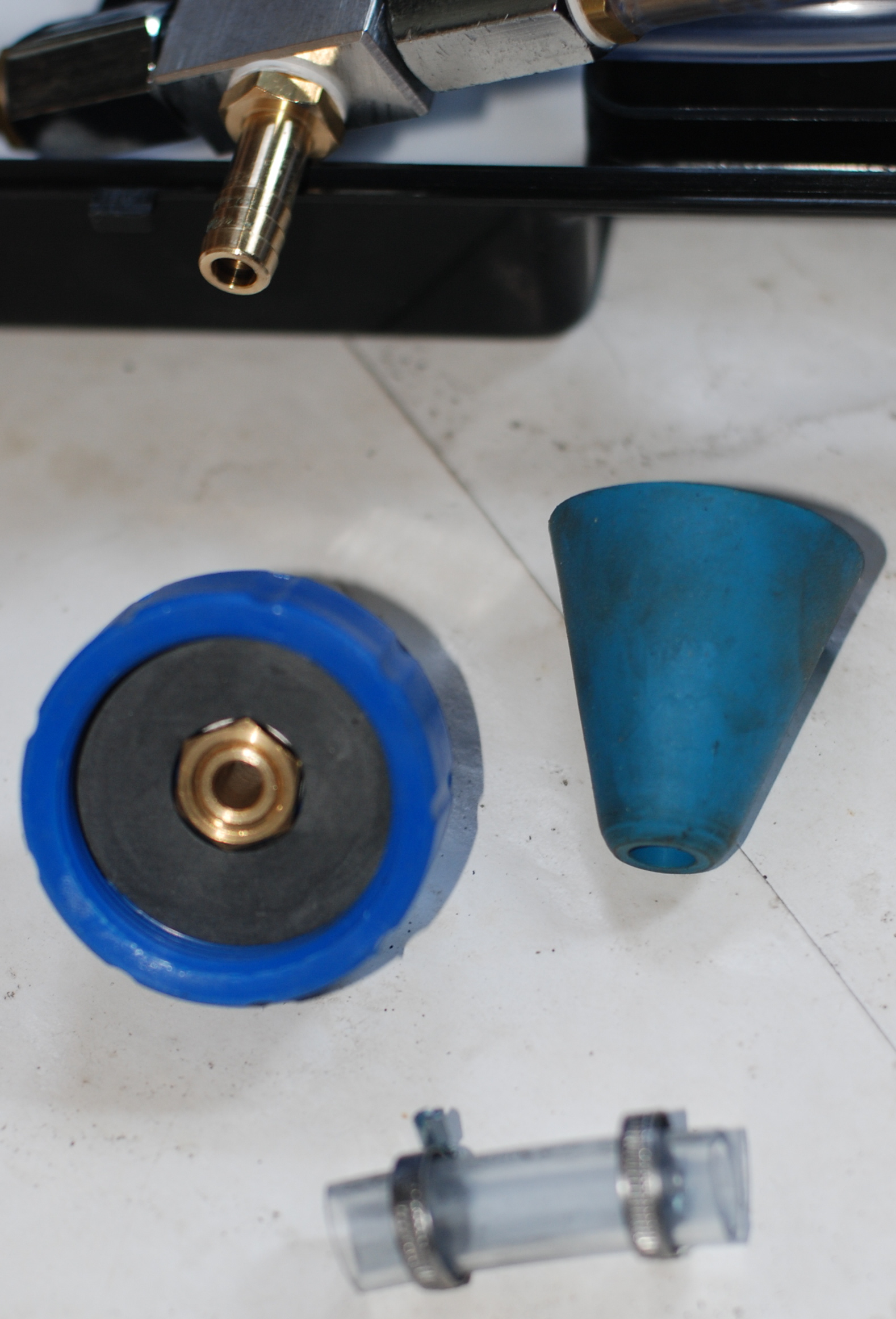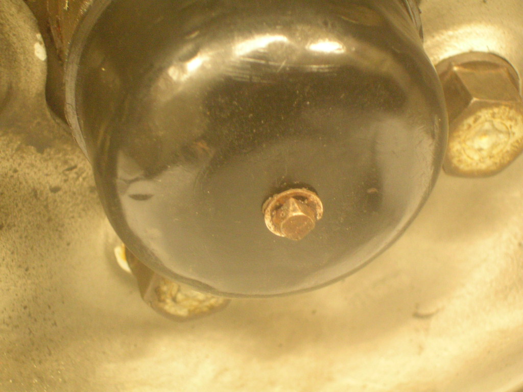 De twee neuwe witte plastiekjes ,4 koperen ringen voor toevoer en retour en 1 voor aan de klokopening in het midden. Deze laatste 12mm bout moet zeer hard worden aangedraaid.Deze gaat anders lekken.