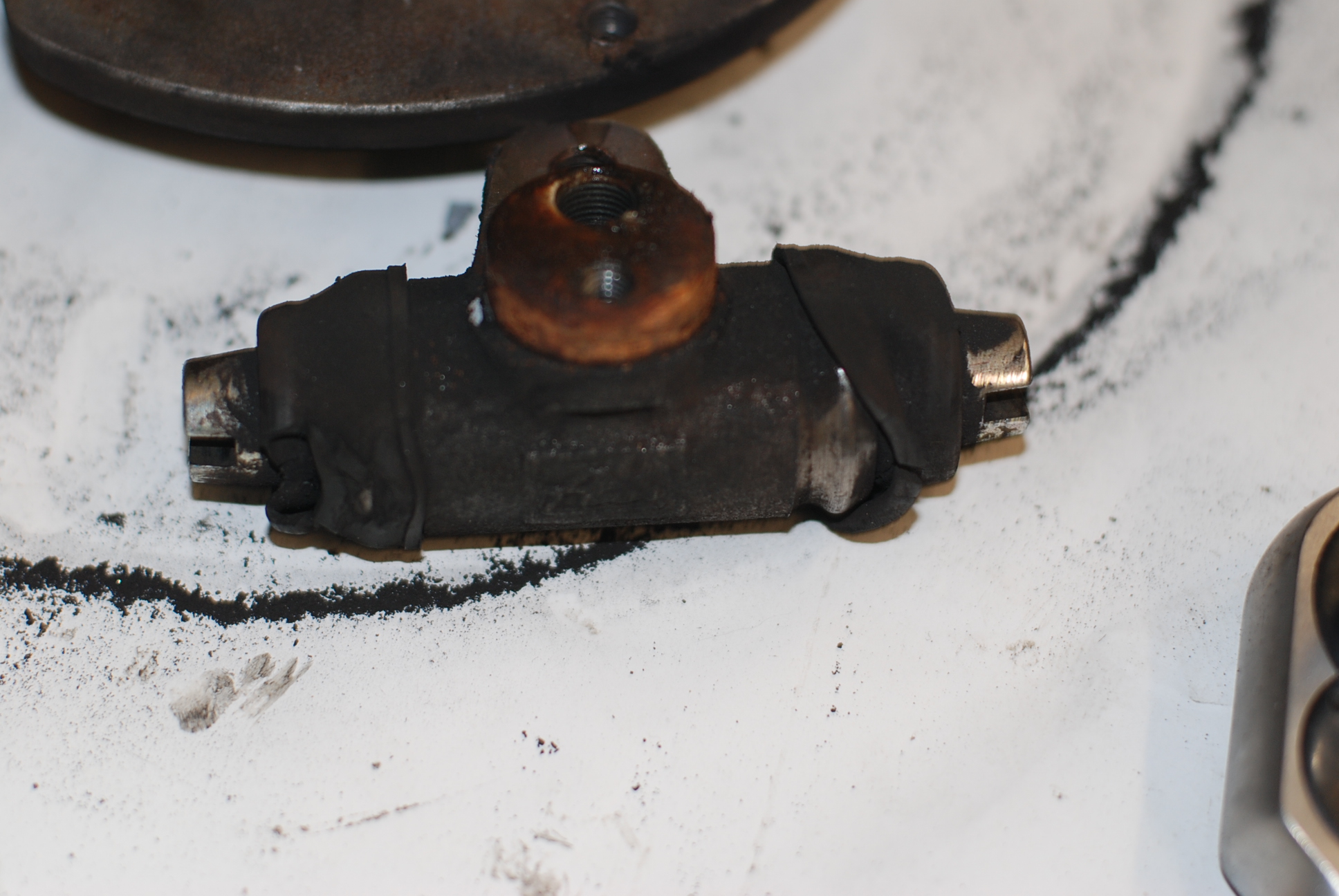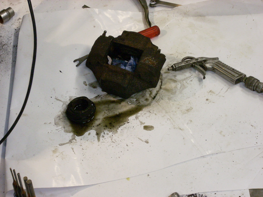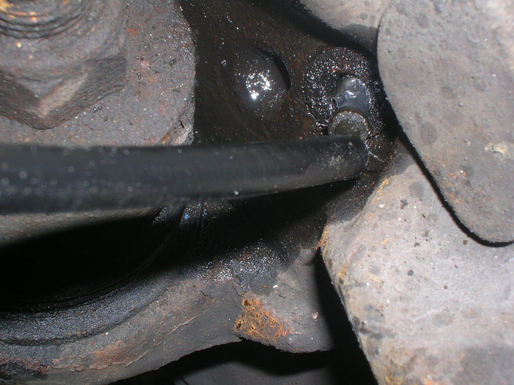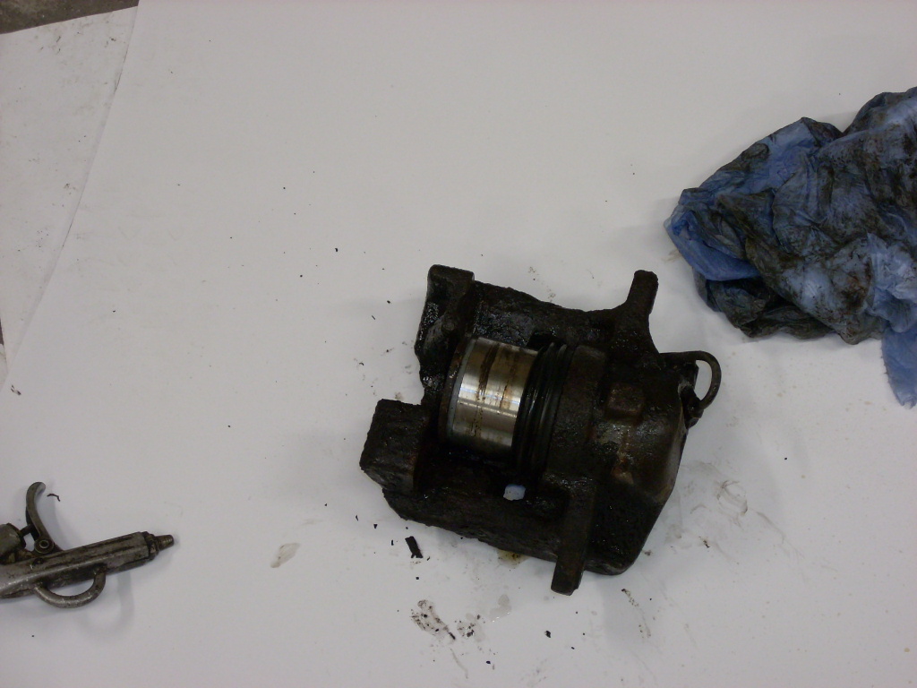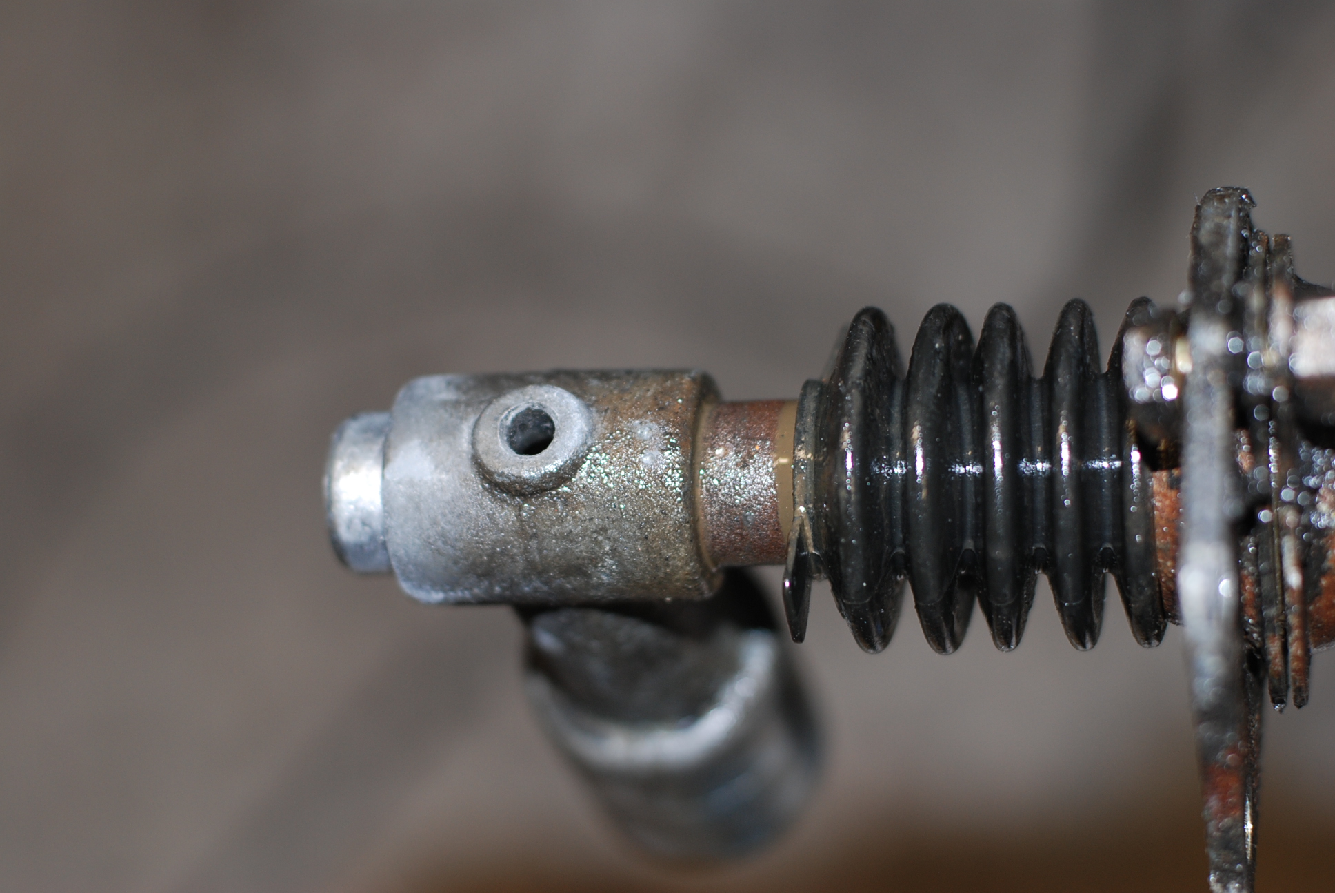 bij het demonteren van de rubberhoes kwam de remvloeistof er zo uit.Dus lek.Was hersteld met uithonen en revisiekit,2,5 jaar geleden.