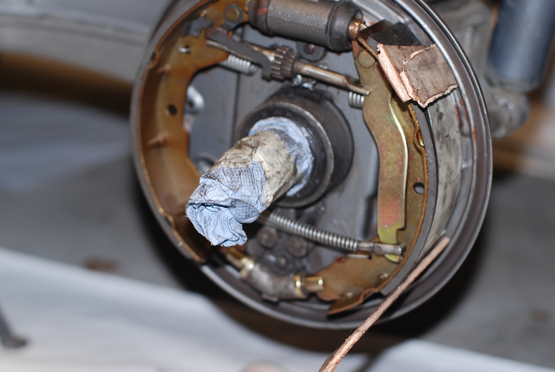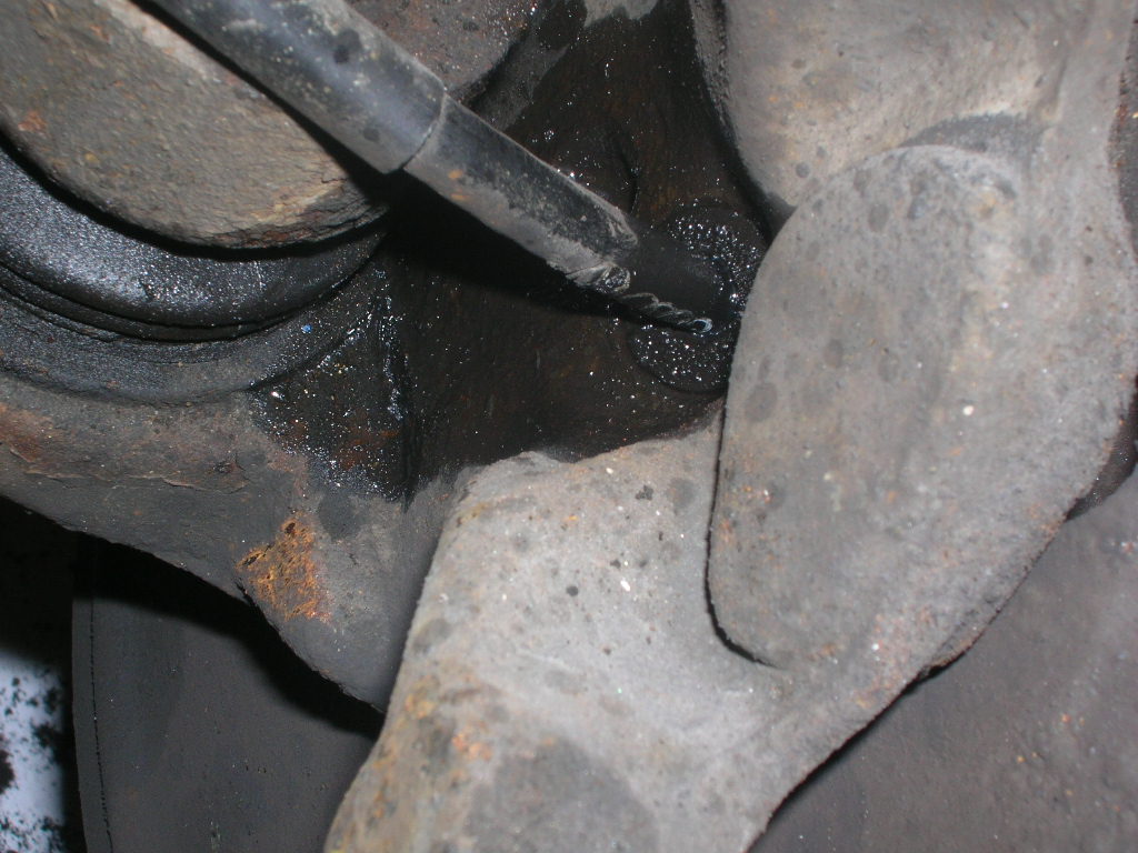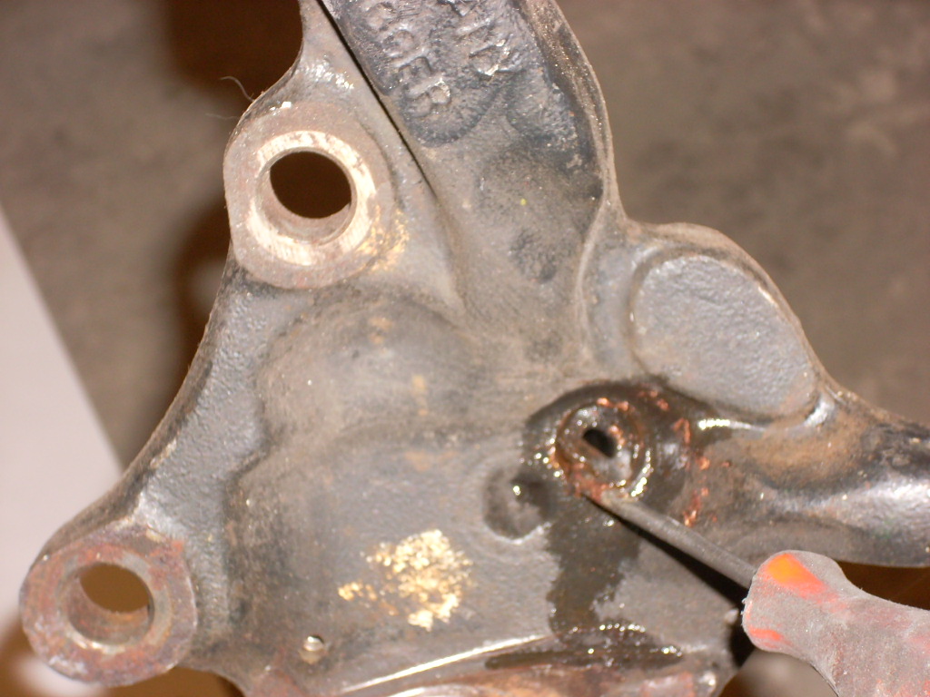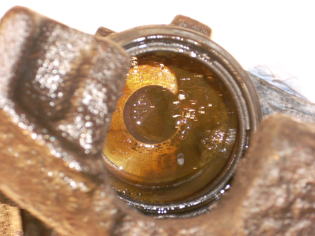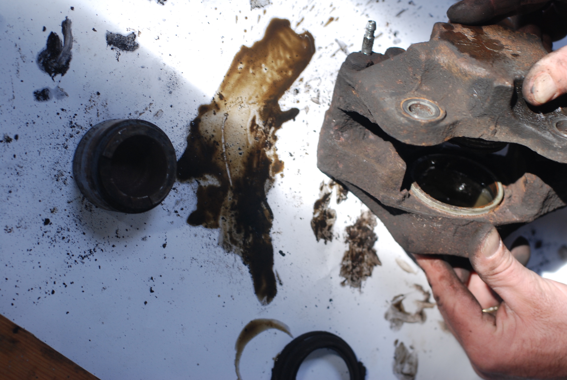 bij het demonteren van de rubberhoes kwam de remvloeistof er zo uit.Dus lek.Was hersteld met uithonen en revisiekit,2,5 jaar geleden.