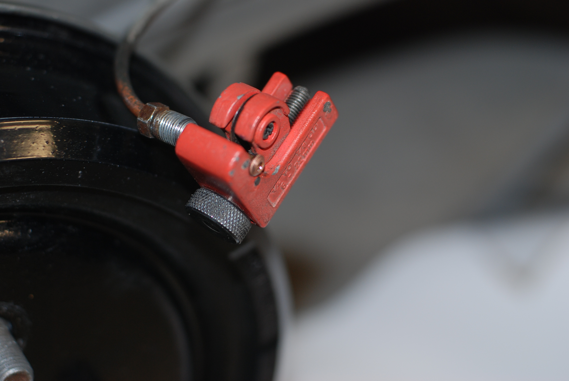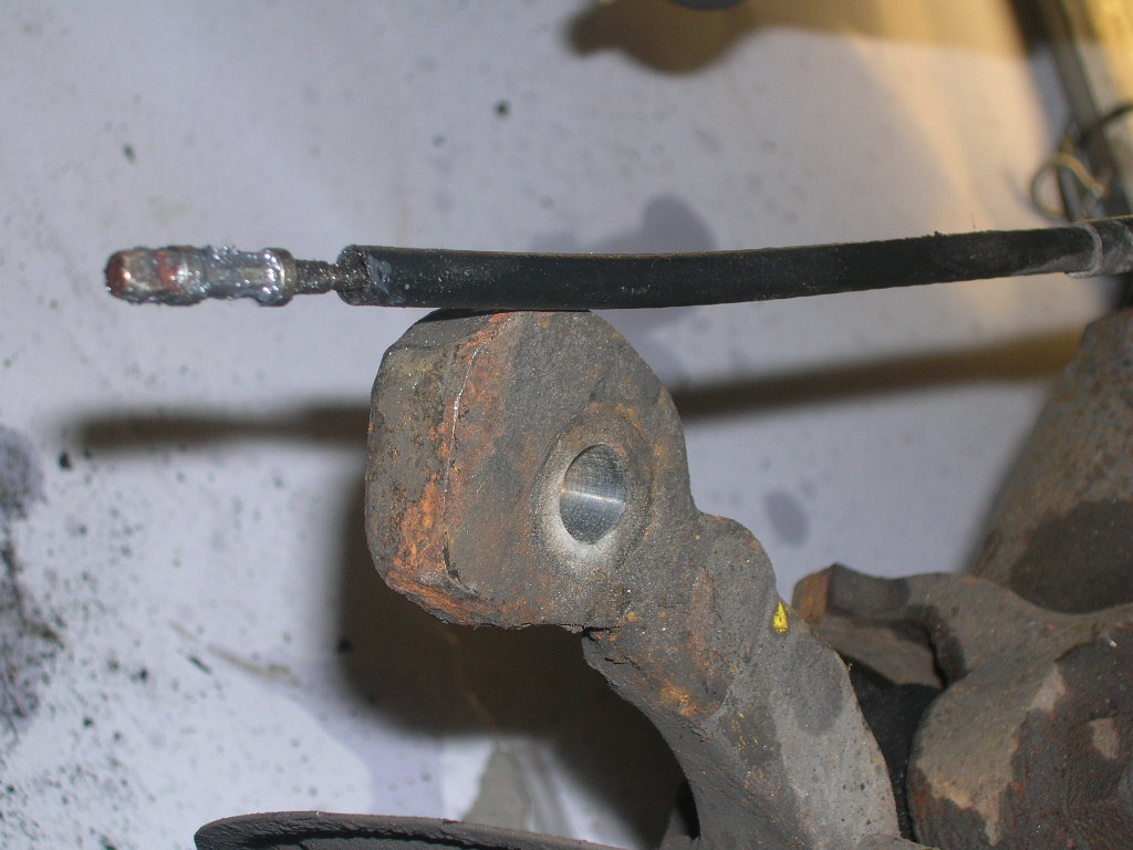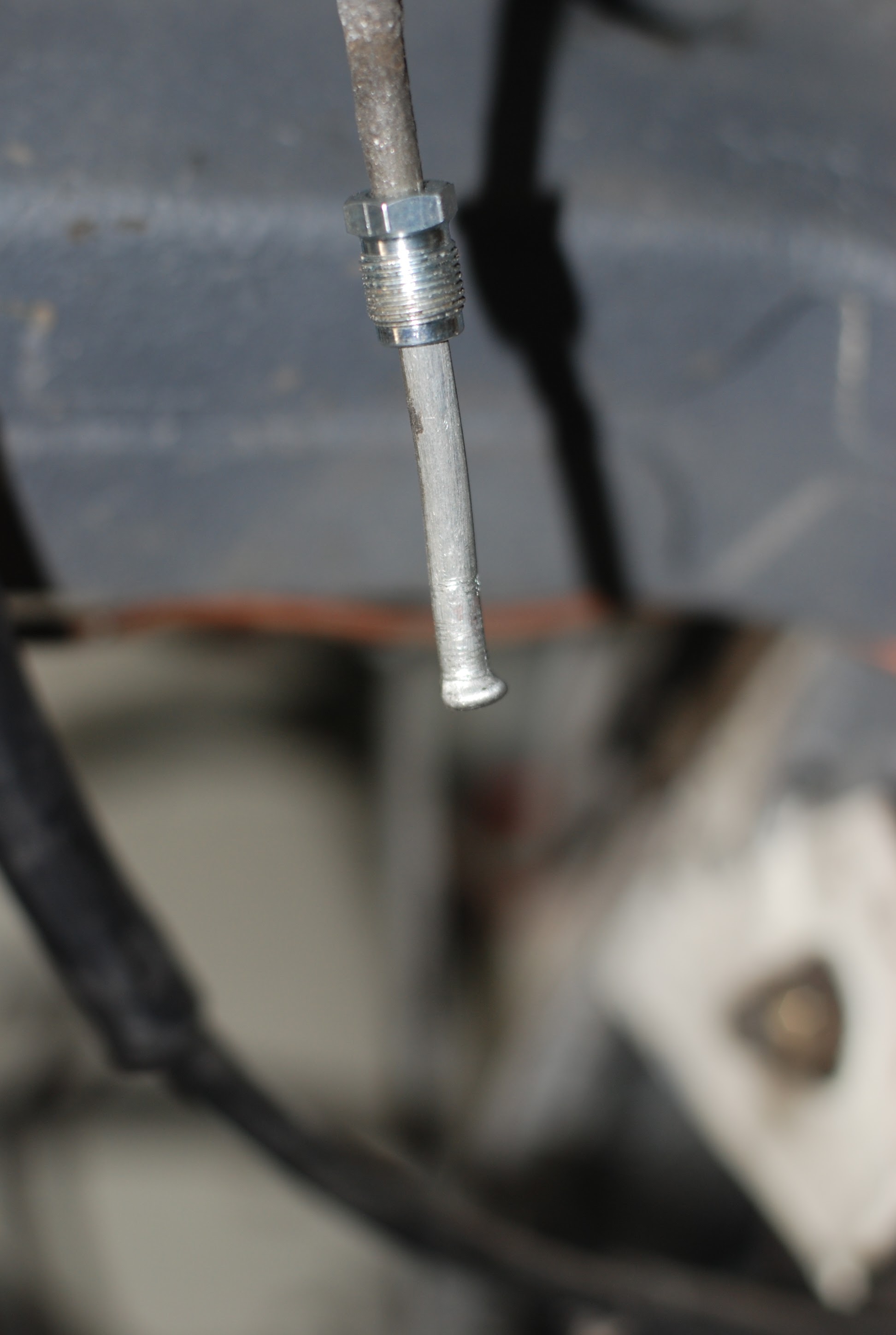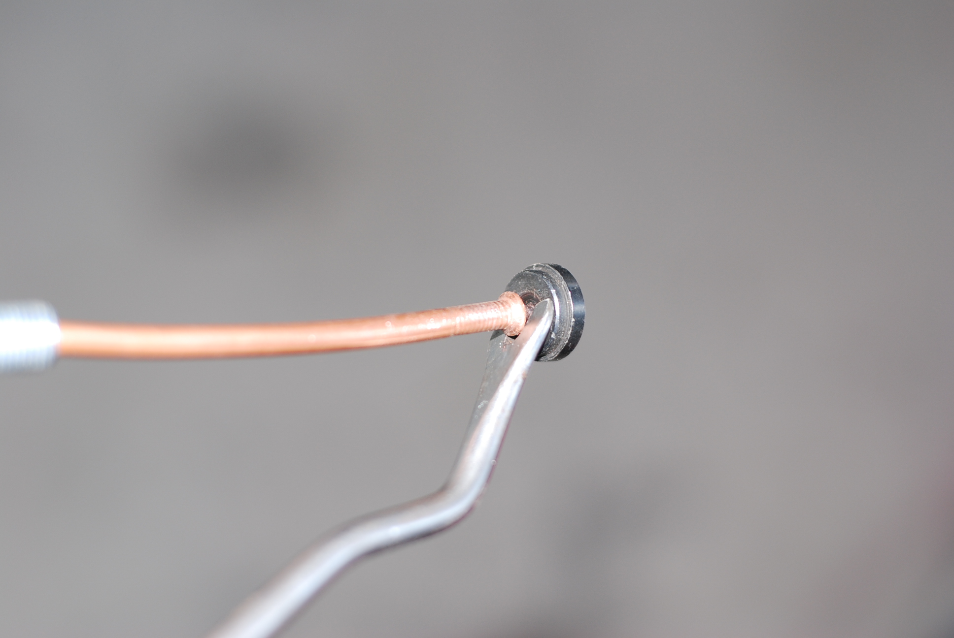 Dan maar afgeknipt.Omdat de leiding een iets grotere diameter heeft dan normale remleiding;moest ik een oud stukje recuperen van op mijn zoldertje.