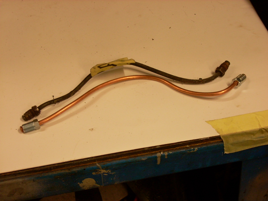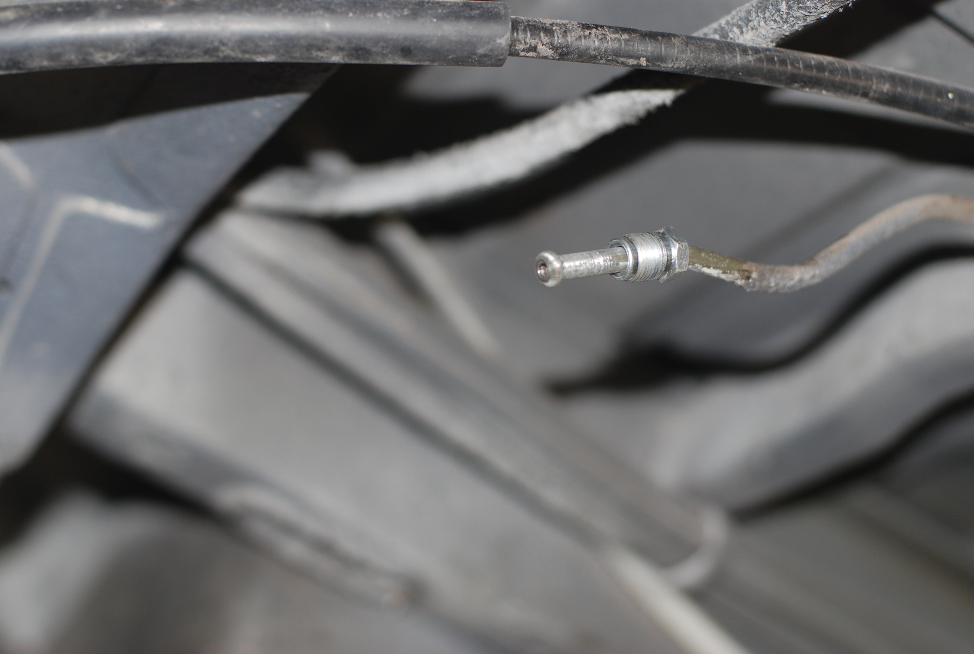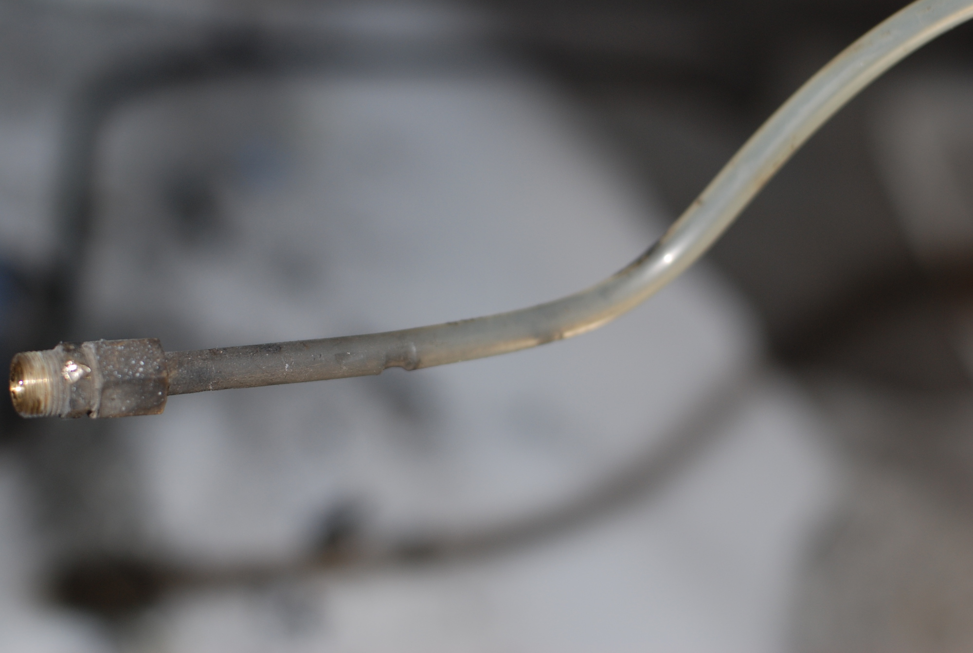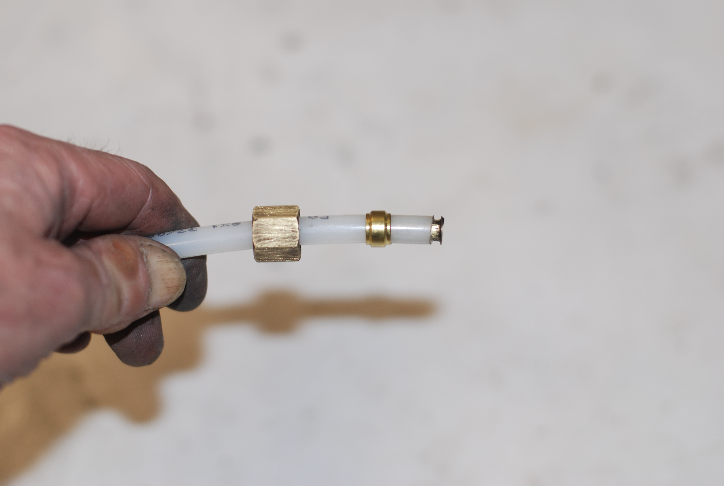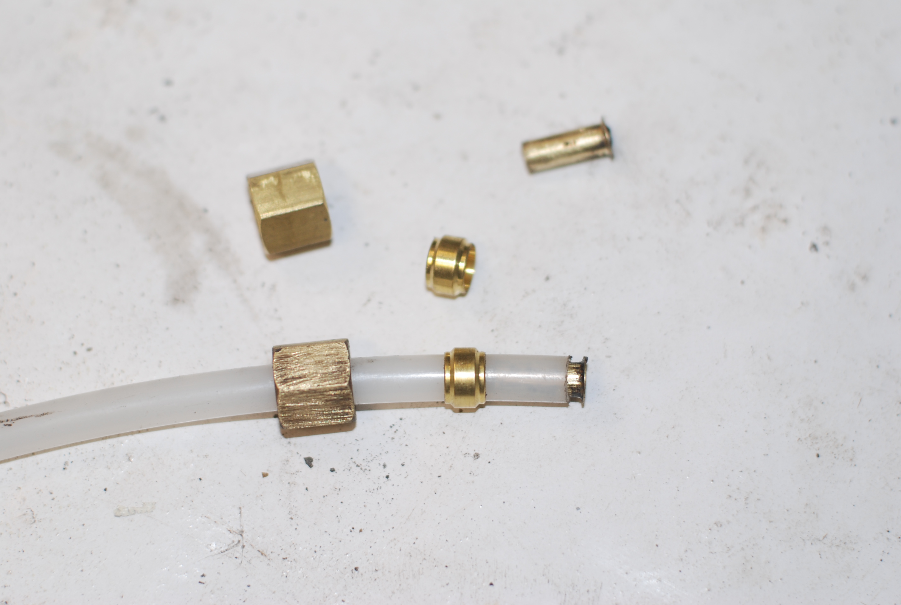 Dan maar afgeknipt.Omdat de leiding een iets grotere diameter heeft dan normale remleiding;moest ik een oud stukje recuperen van op mijn zoldertje.