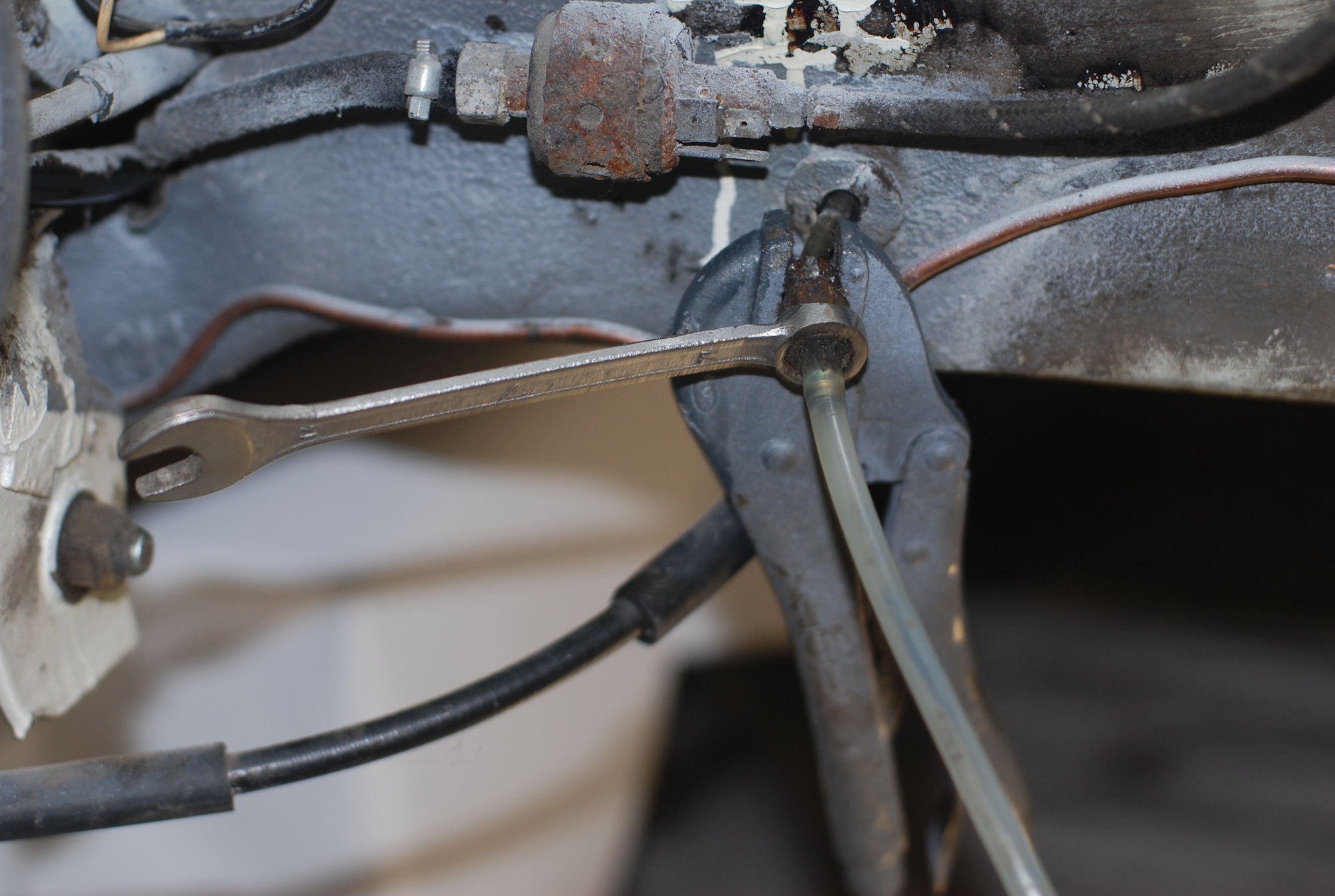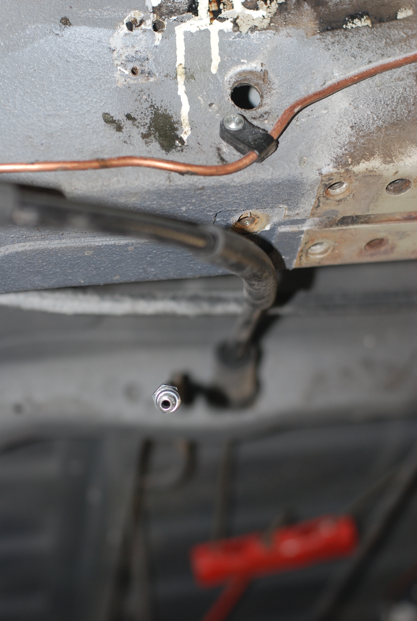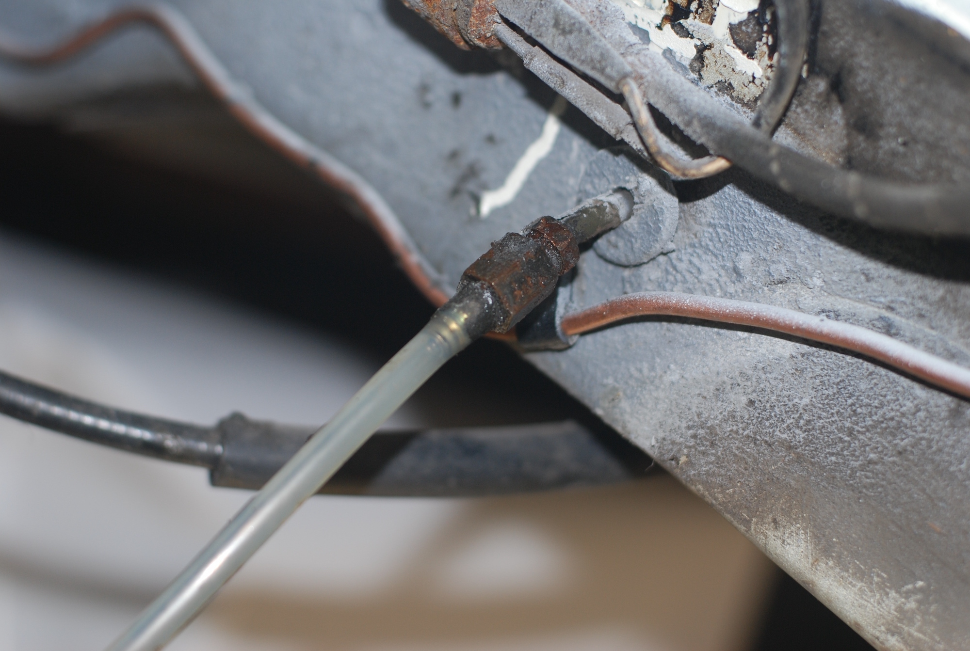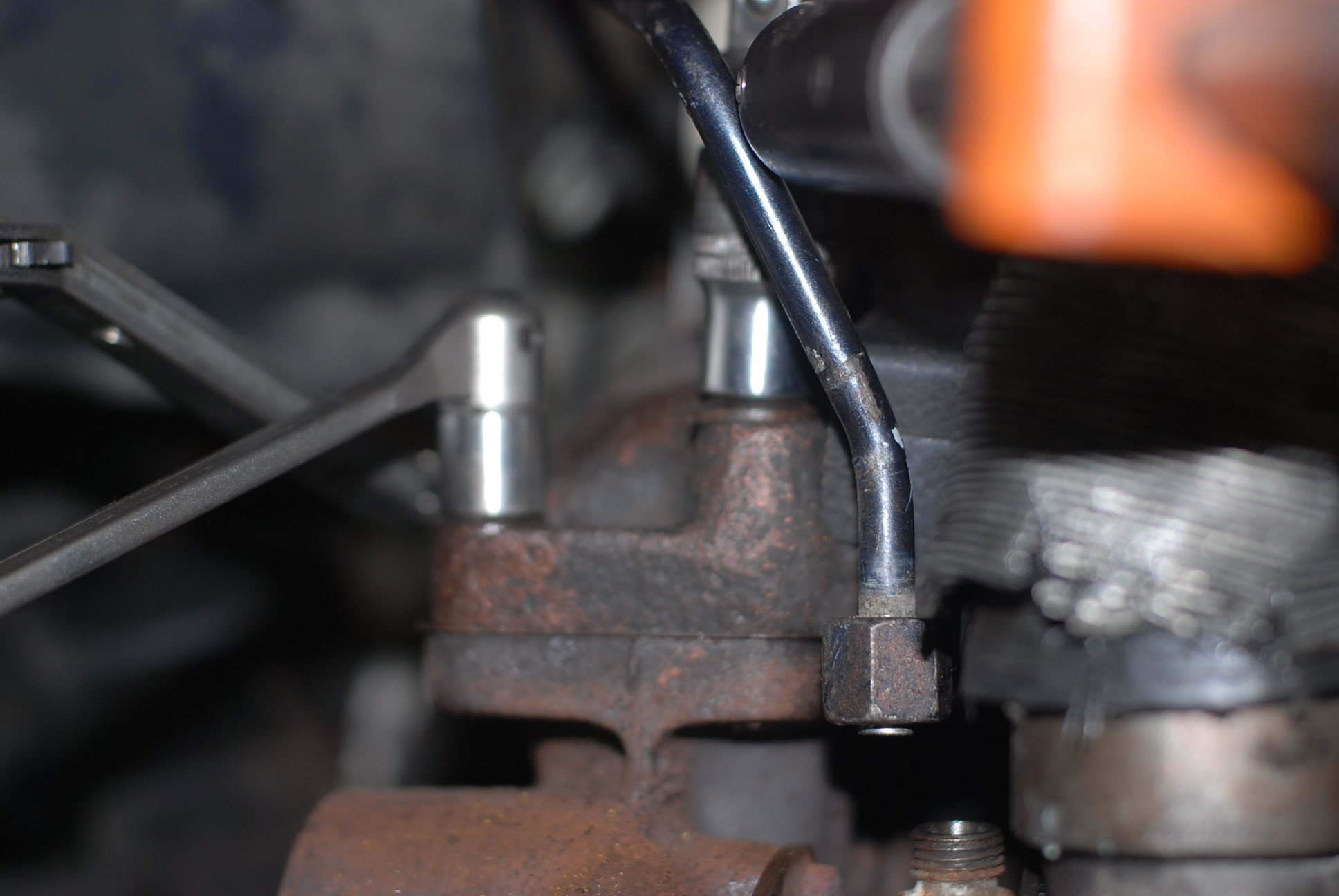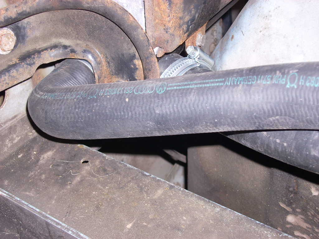 De laatste leiding aan de koppelingsnemer is niet meer verkrigbaar en werd bij mijn T3 al eens vervangen door een nylon leiding.Op mijn zolder vond ik echter nog een goede originele leiding.