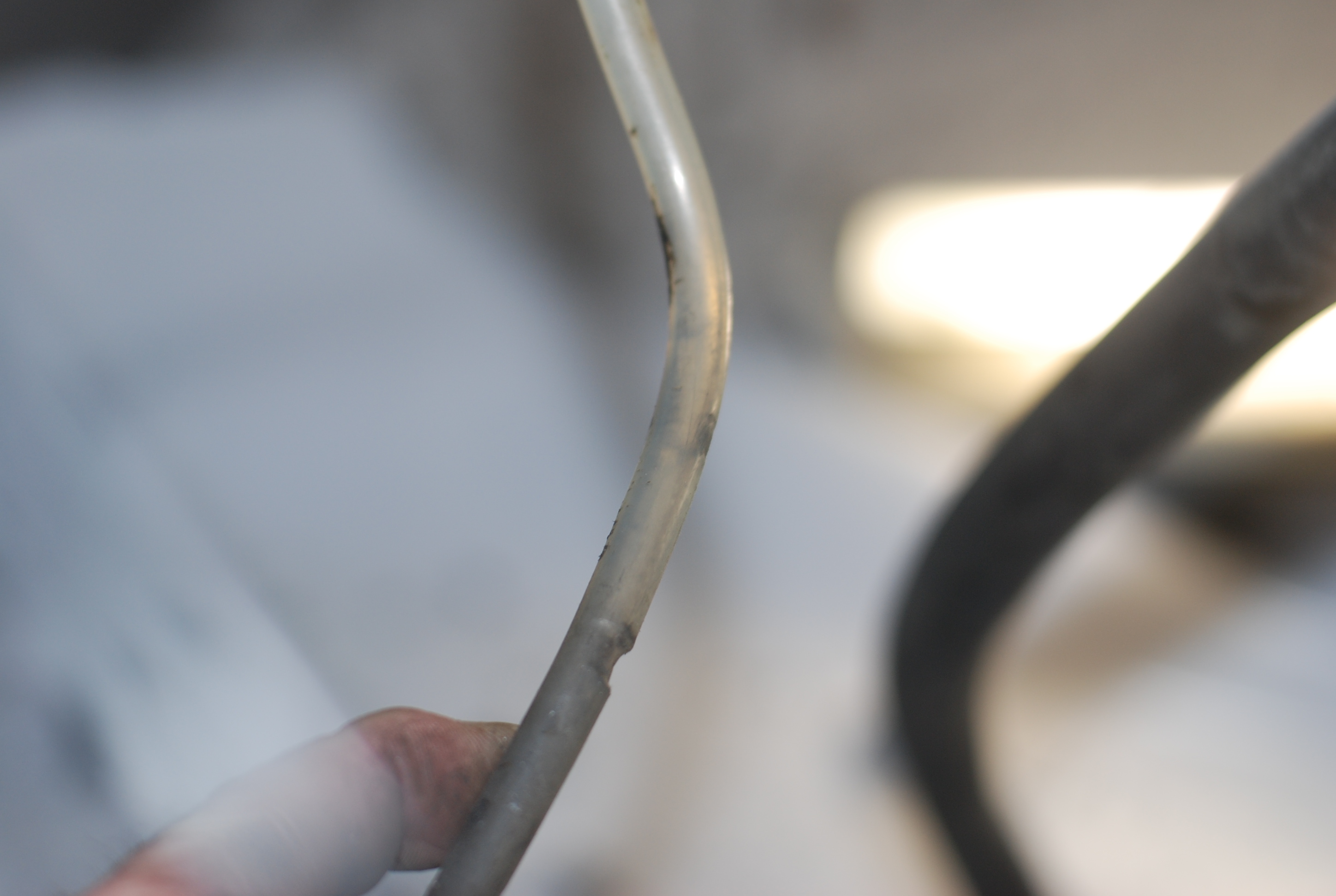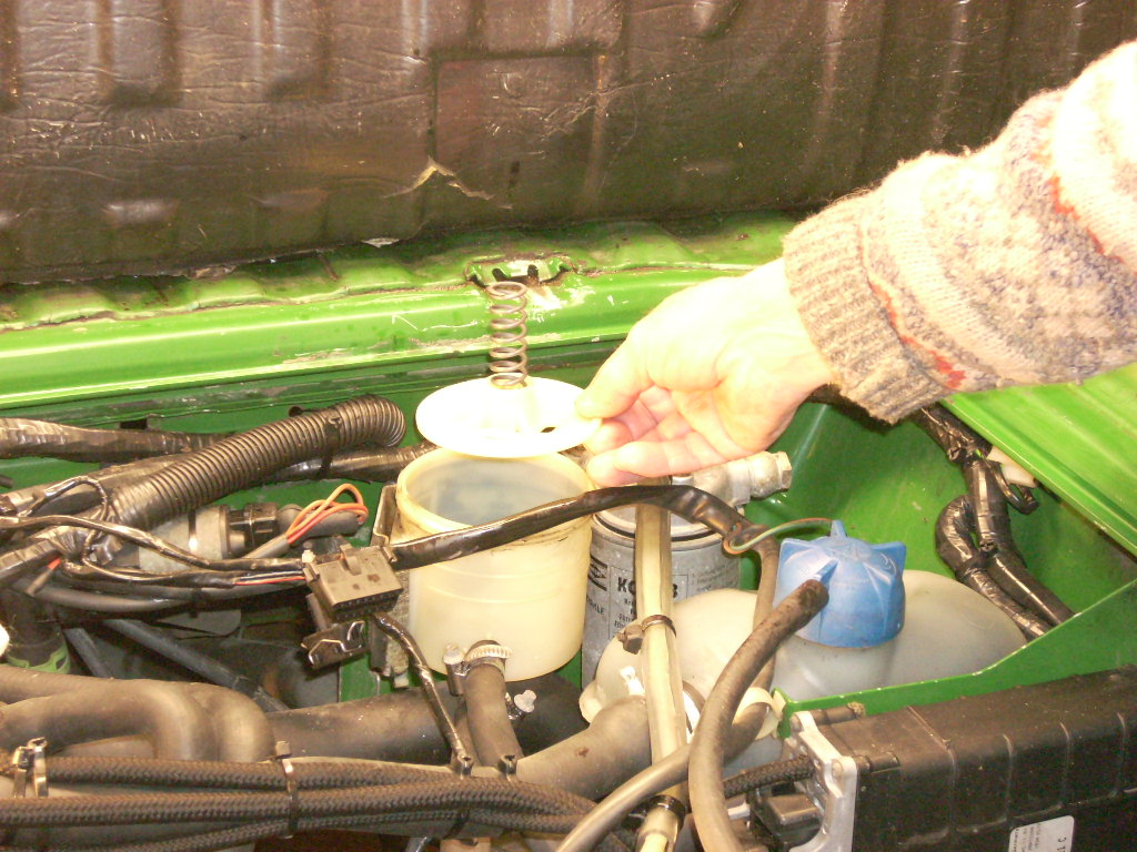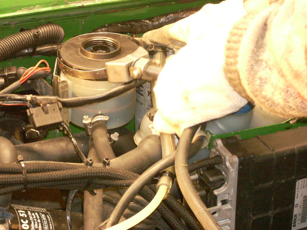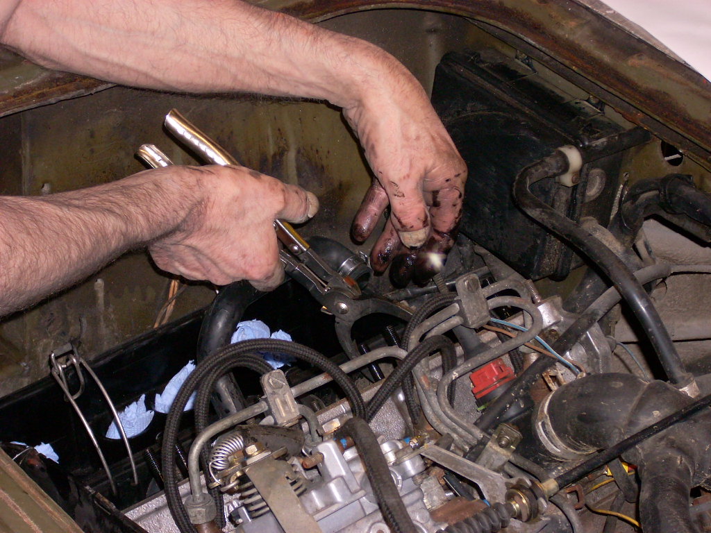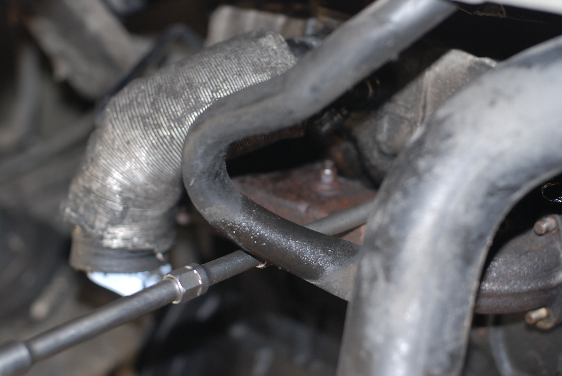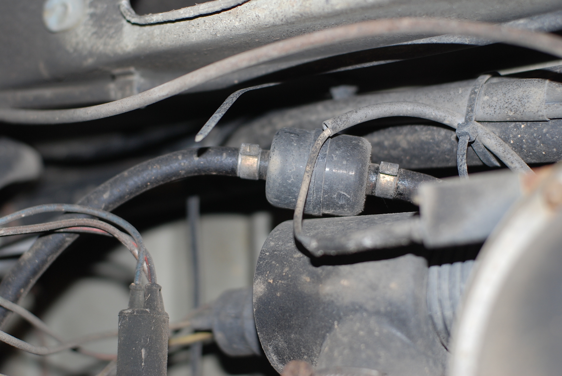 De laatste leiding aan de koppelingsnemer is niet meer verkrigbaar en werd bij mijn T3 al eens vervangen door een nylon leiding.Op mijn zolder vond ik echter nog een goede originele leiding.