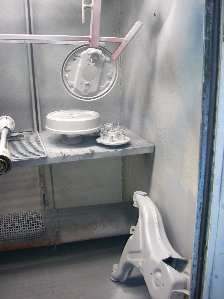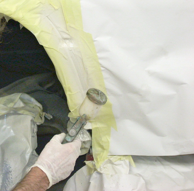 Met een deurslagpistooltje worden drie lagen 2K-lak aangebracht met tussentijdse uitdampingen.