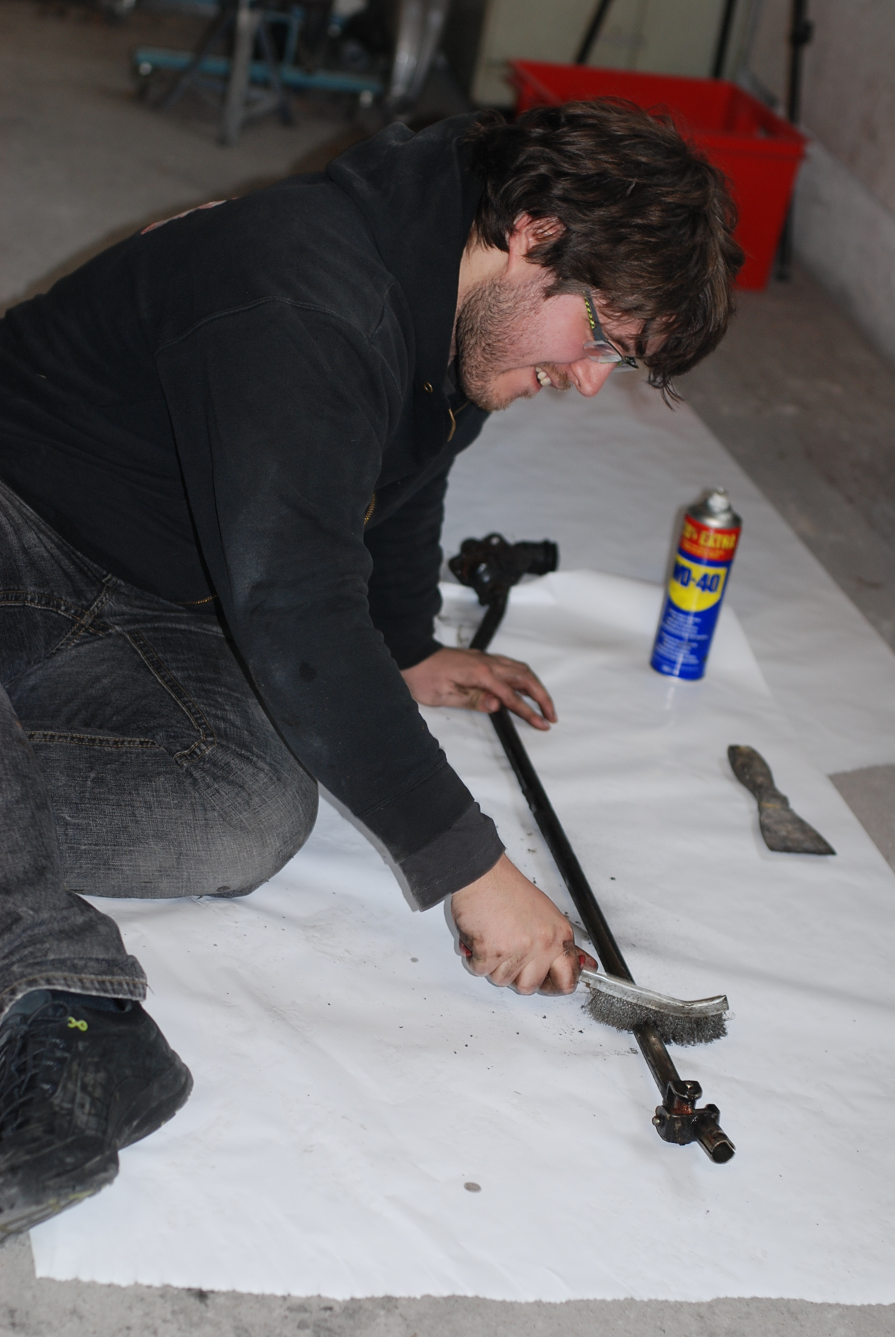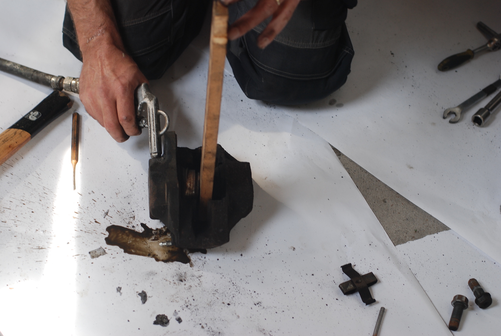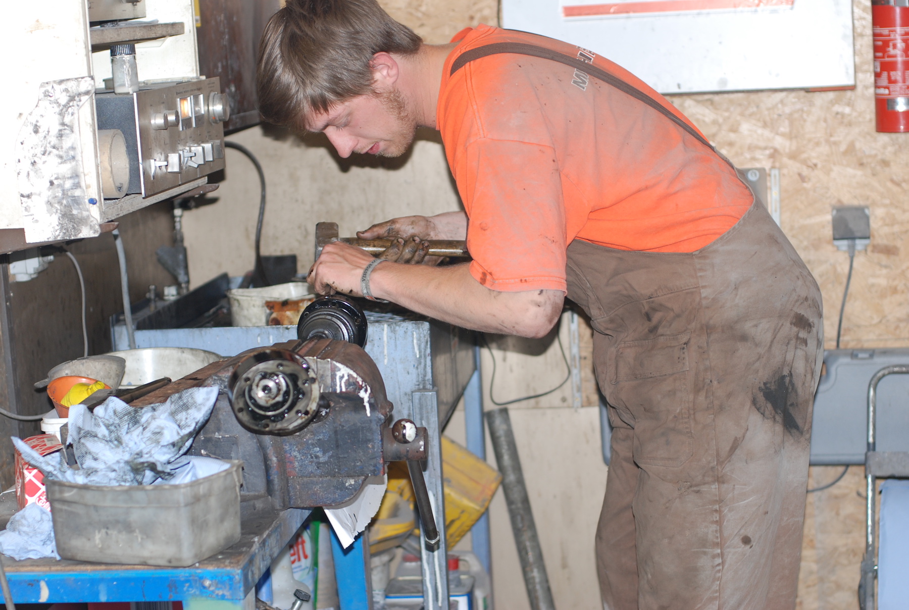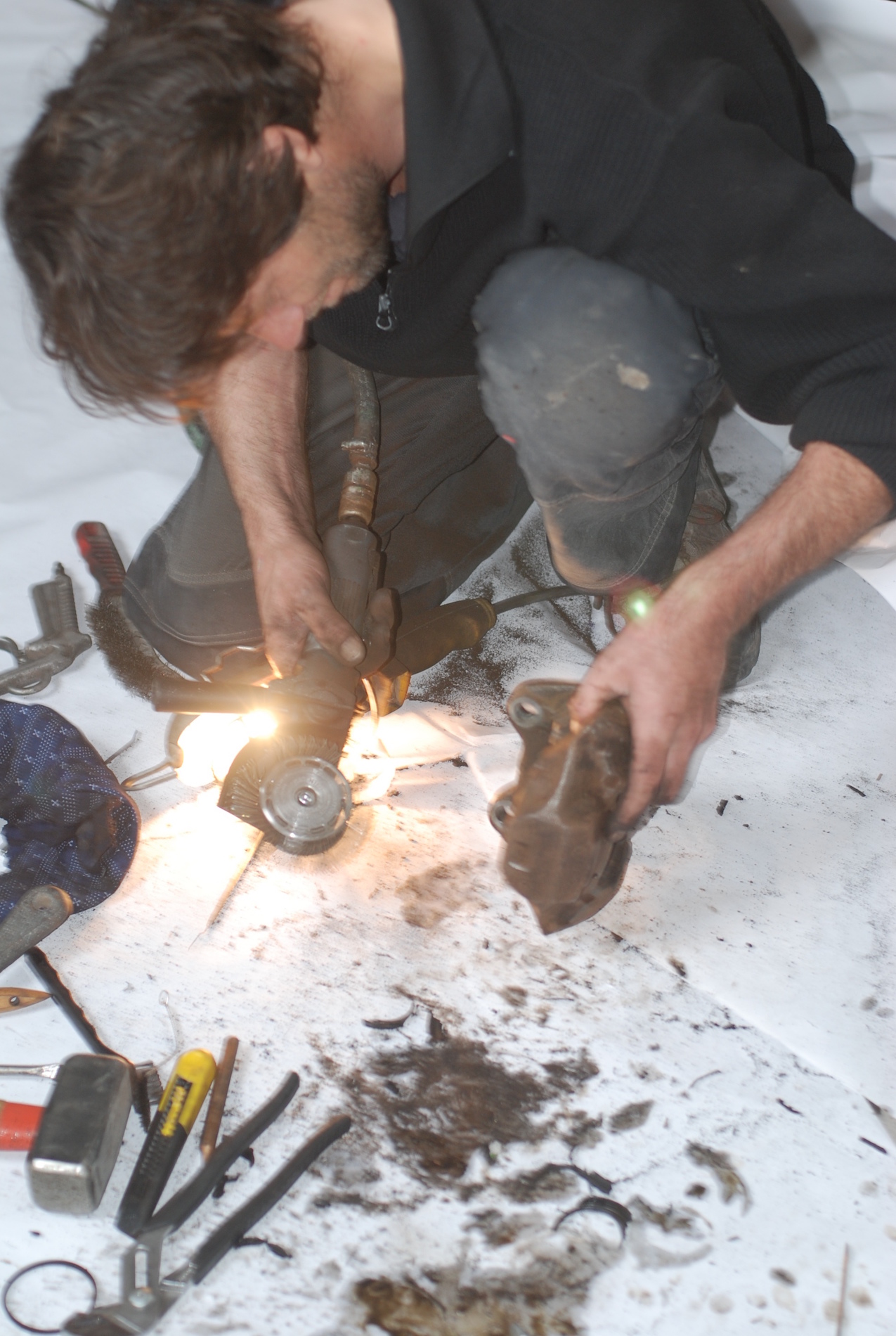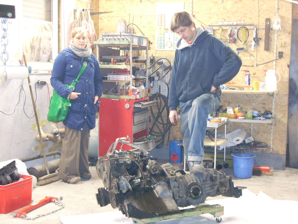 Even beteuterd kijken naar zijn KY motor,waarvan de v-bak en nieuwe koppeling afmoet