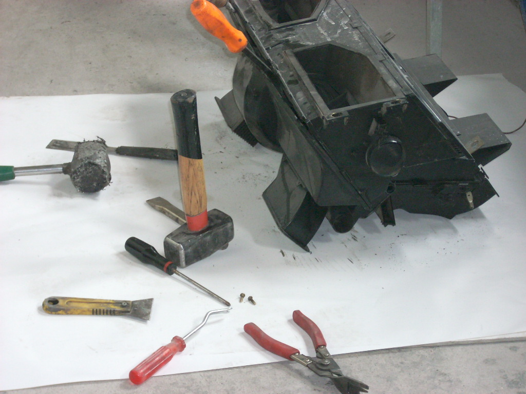 Om aan de radiator te kunnen moet de plastiek geopend worden,met geweld….