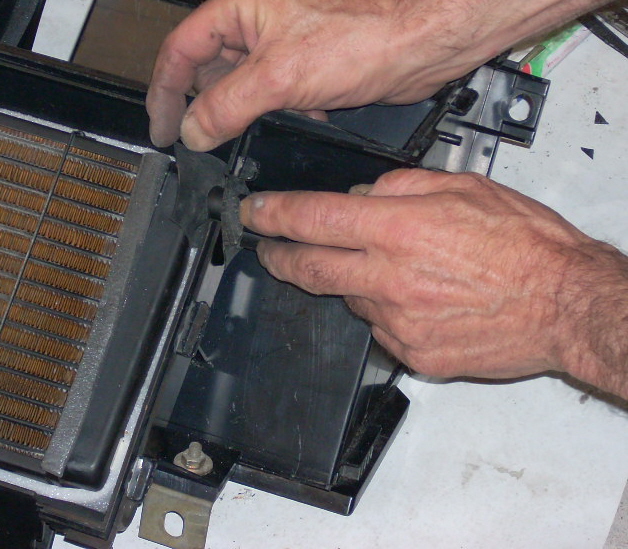 De 4 plastieken klemmen die de onderste kleppenas op zijn plaats houden.