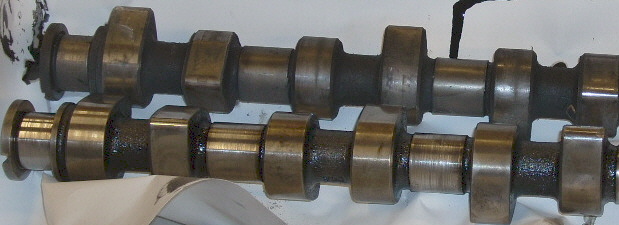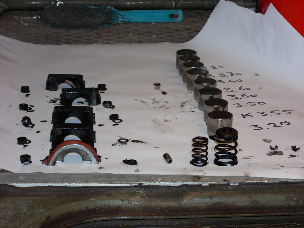Een paar R en L kleppen,die ik eruit nam om de kleppenas te demonteren worden er weer ingeklopt.