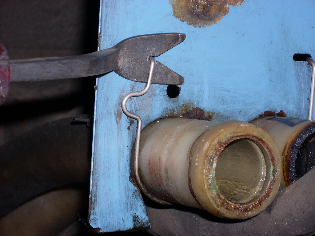Met een zelfgemaakte beugel en een bestelde ATE flexibel de leidingen bevestigen op de losse v-bak.