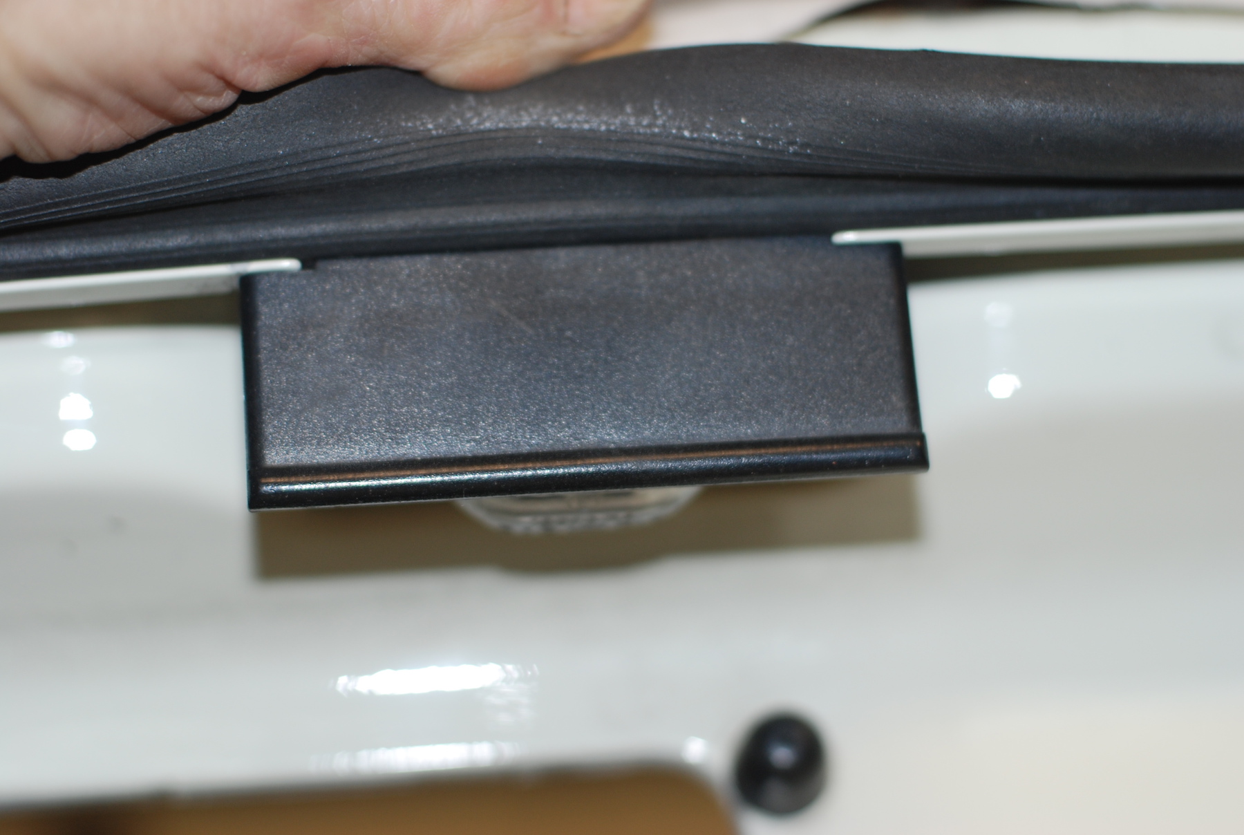 De oude afsluit-schuimrubber wordt na 23 jaar verwijderd.