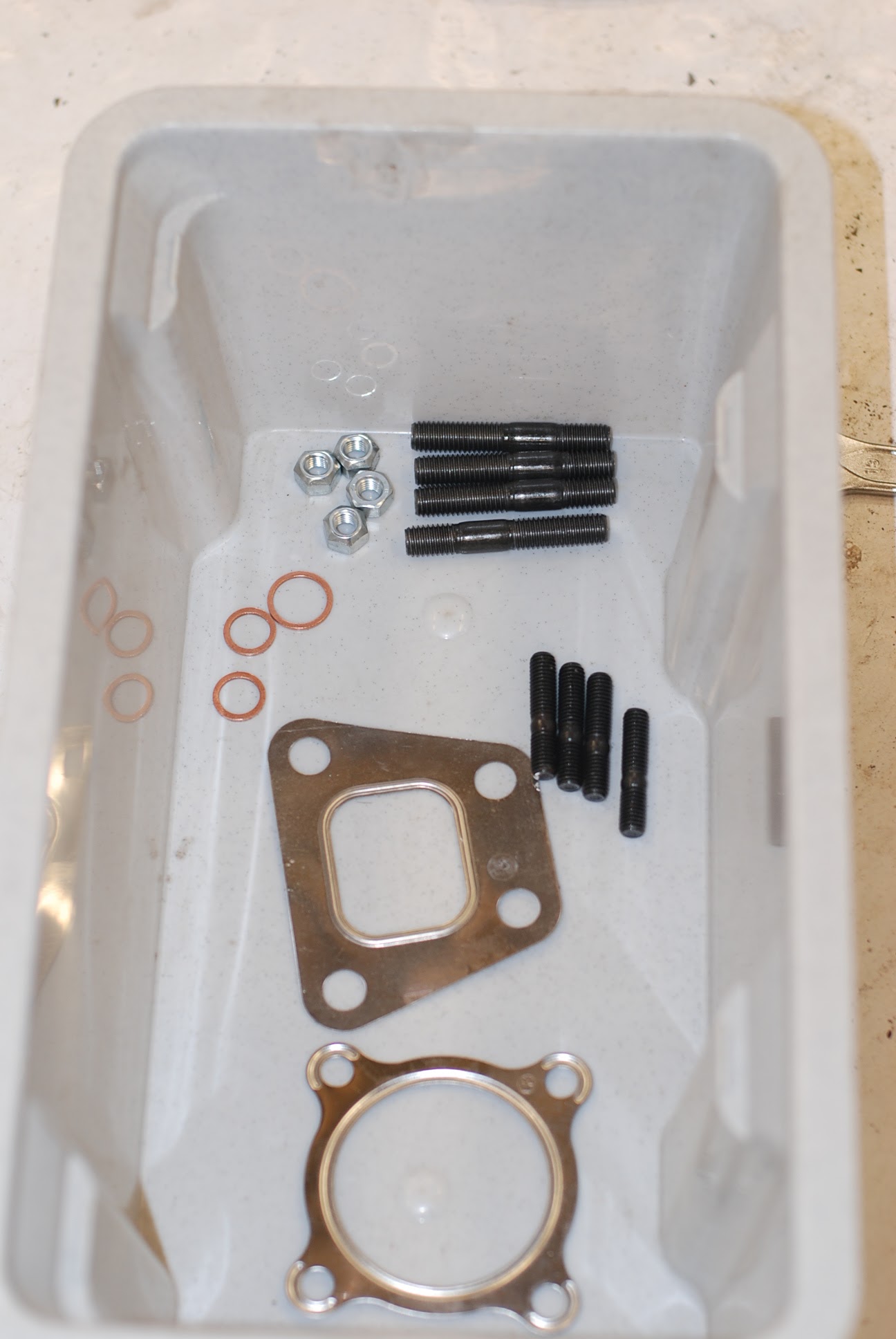 De gemonteerde drukgroep. Nieuwe rekbouten kruisgewijs ,Loctite met 6 kg en dan 90° bijtrekken