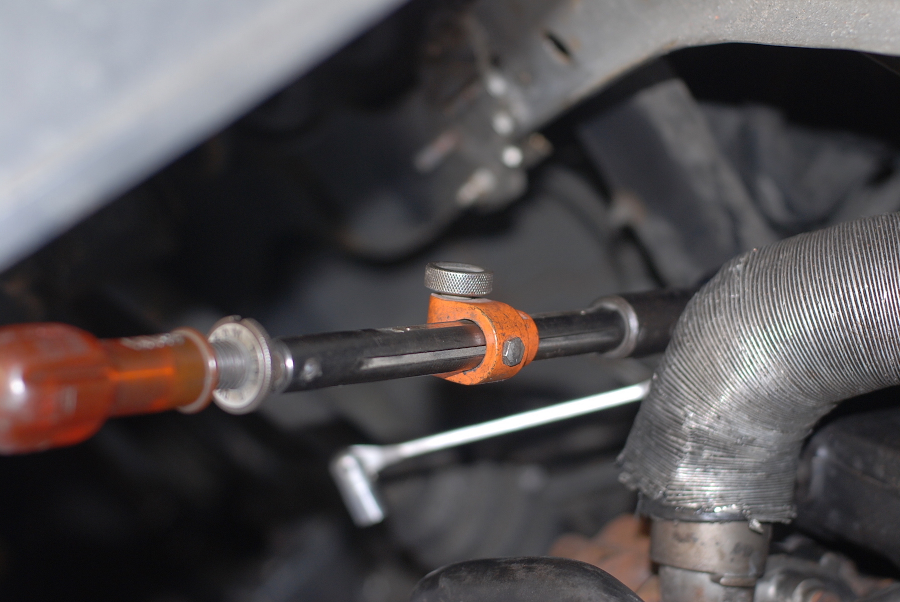 Om de voorste 13 mm moer te monteren ,moet ik even onder de T3.