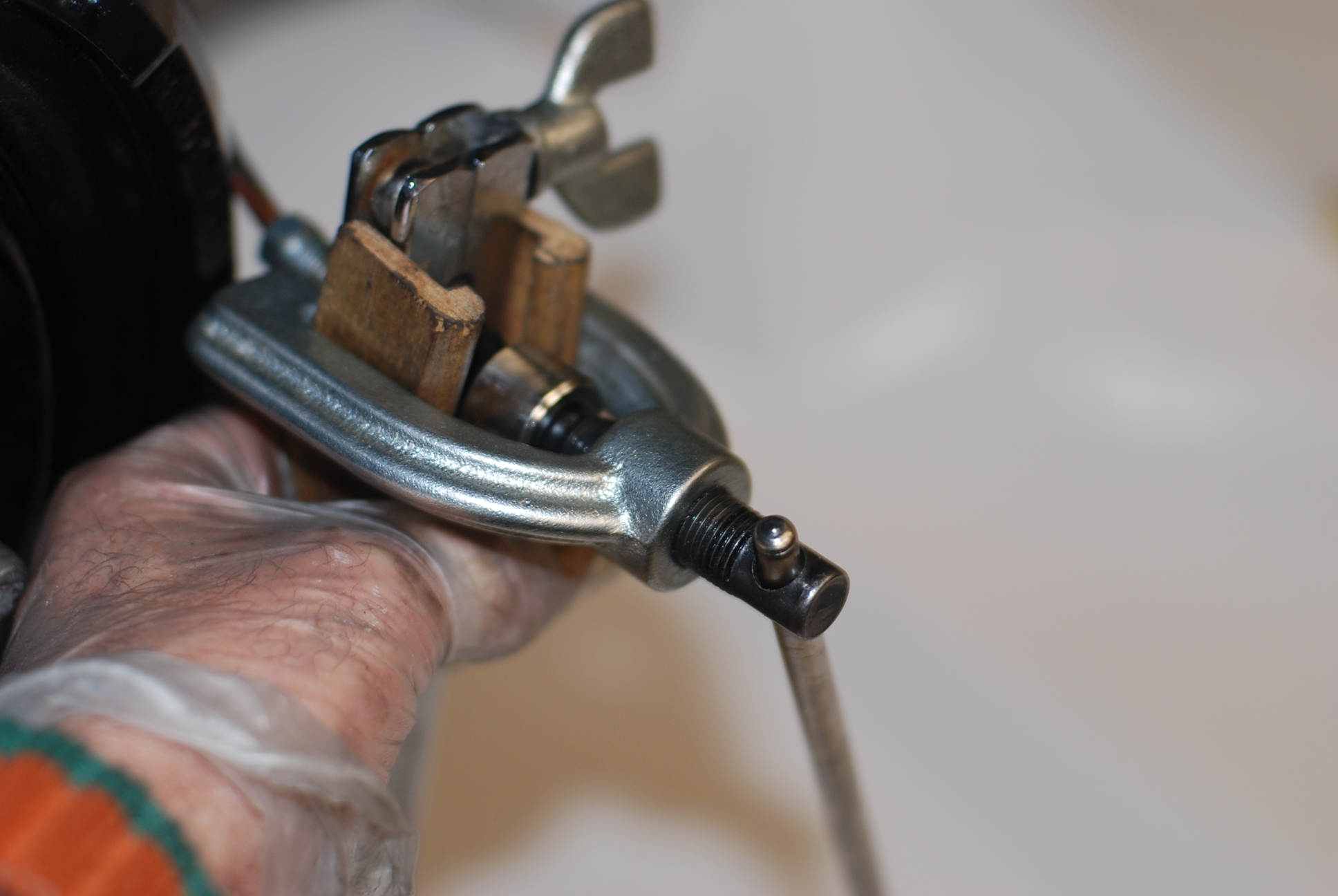 Voordien werd met de speciale trekker het naaldlager verwijderd.