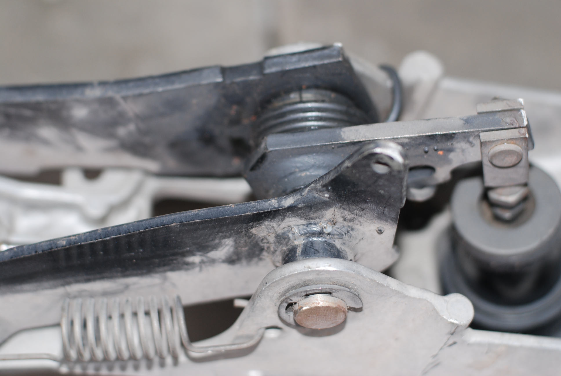 De versnellingspook onderaan:vuil en verkeerd vet.