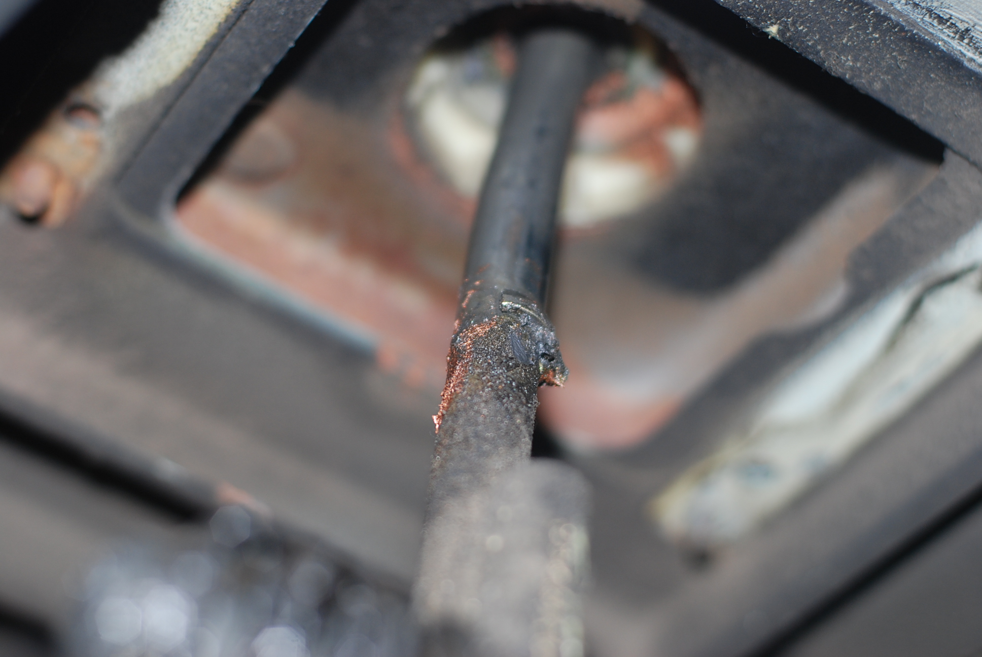 De plastiekbehuizing bleek kapot te zijn na grondige (!) inspectie.Deze werd nadien hersteld met een stuk alu.